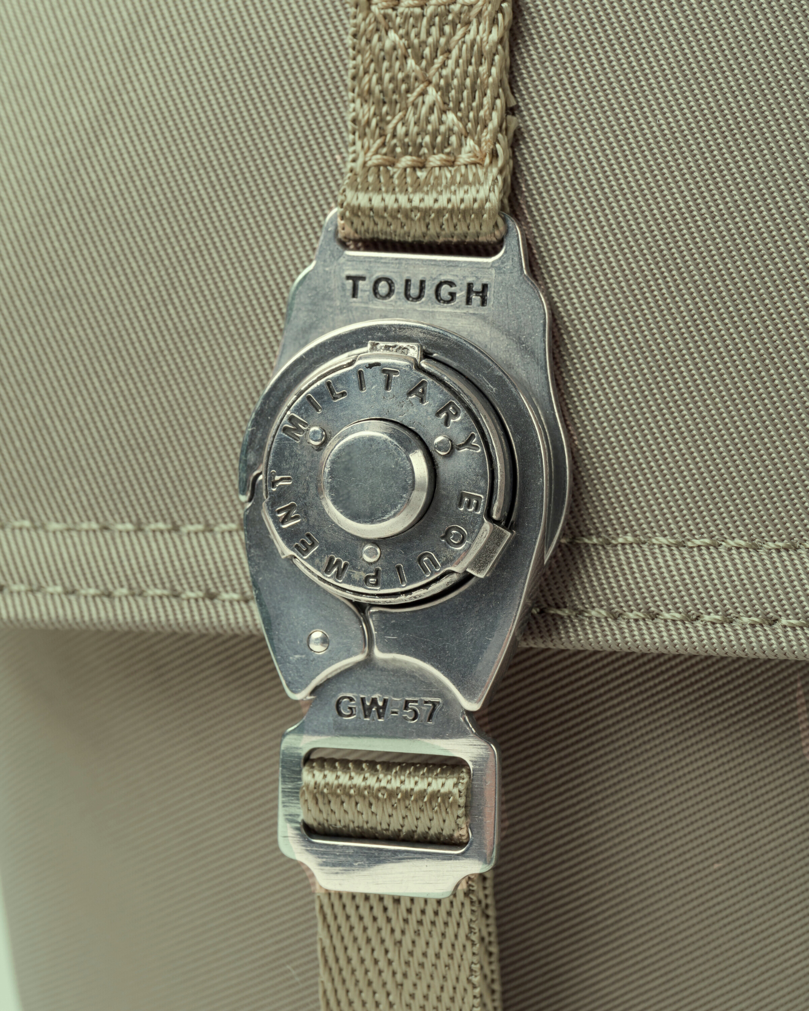 • 帶拉鍊主隔層,前幅左帶蓋袋帶有TOUGH一貫風格的合金扣,按鈕開關