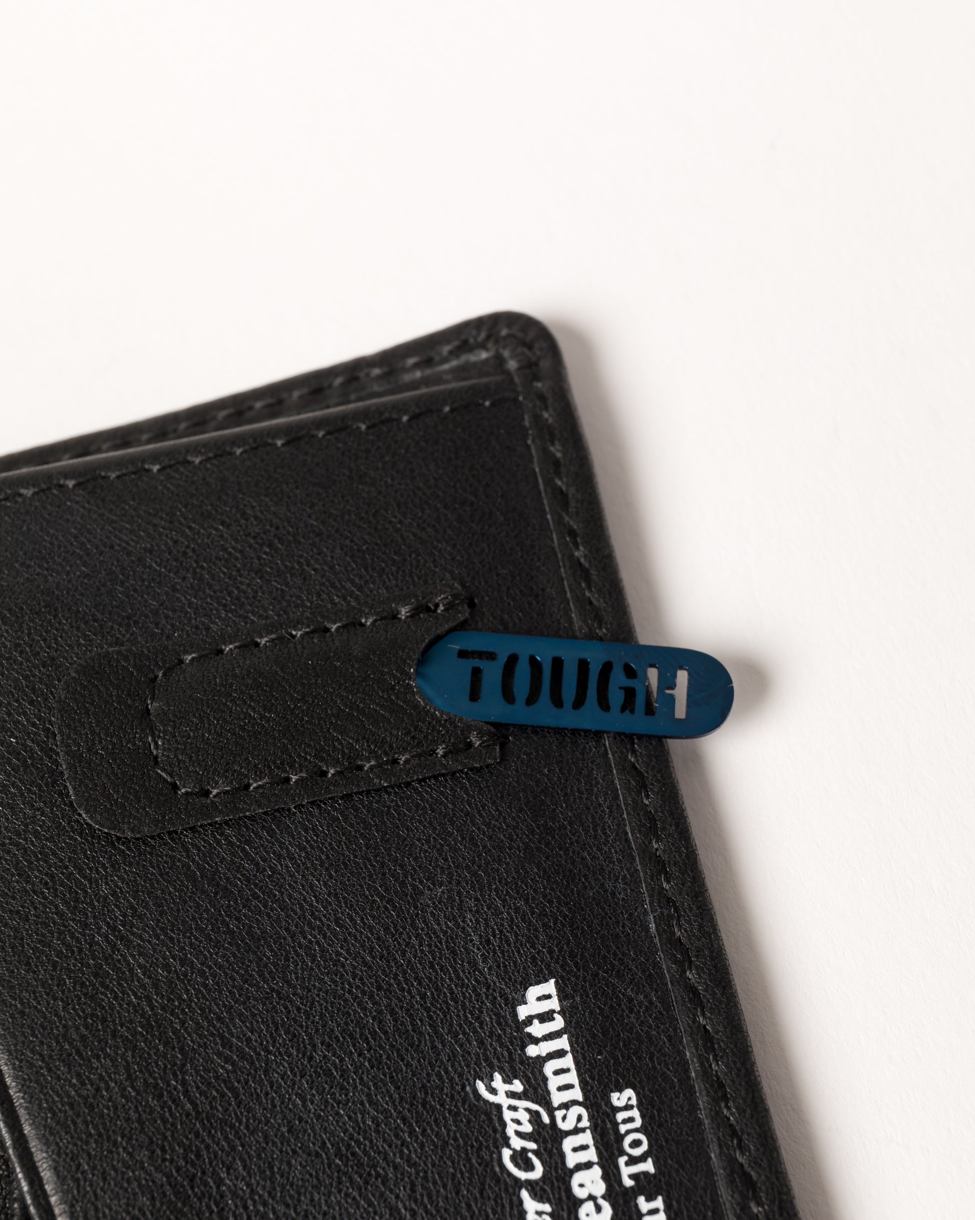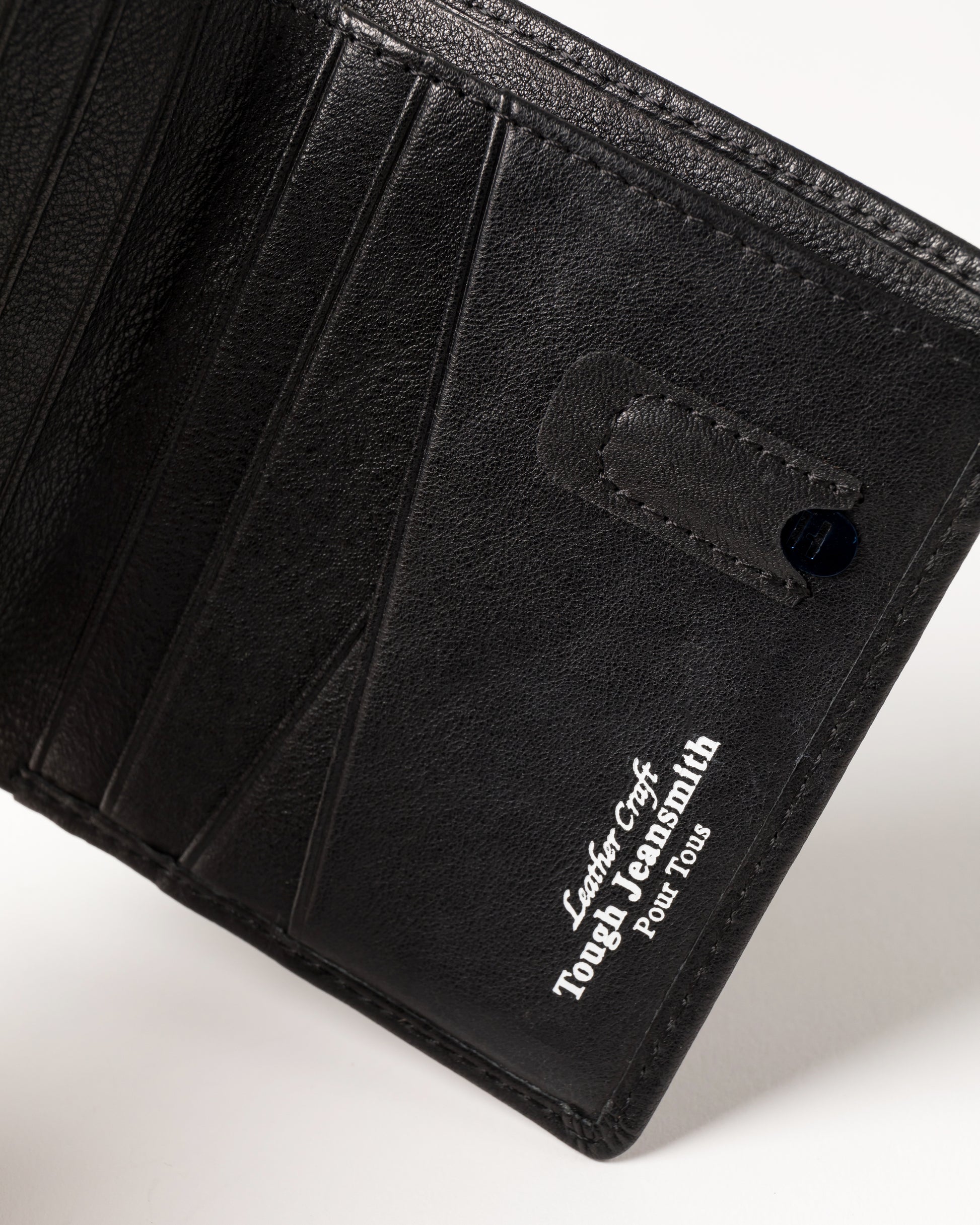 • 垂直短銀包,前幅有一個活動皮套,附有5個信用卡插套