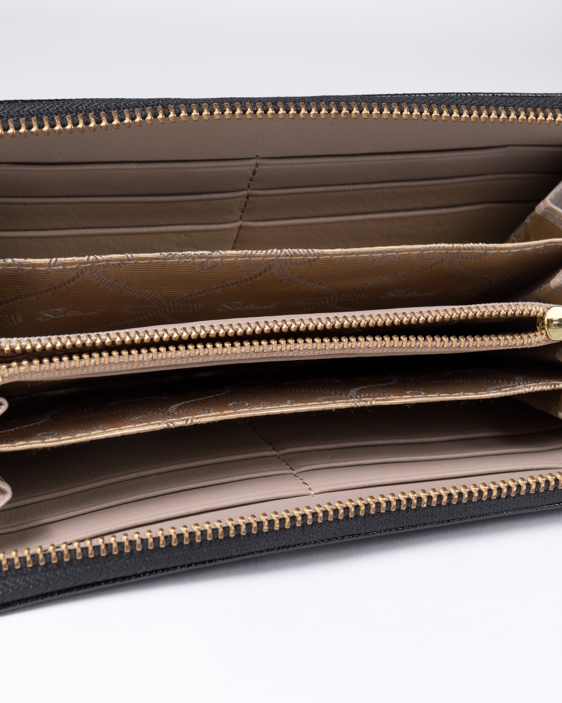 • 一個拉鏈口袋、四個信用卡夾層及一個後幅平底口插袋