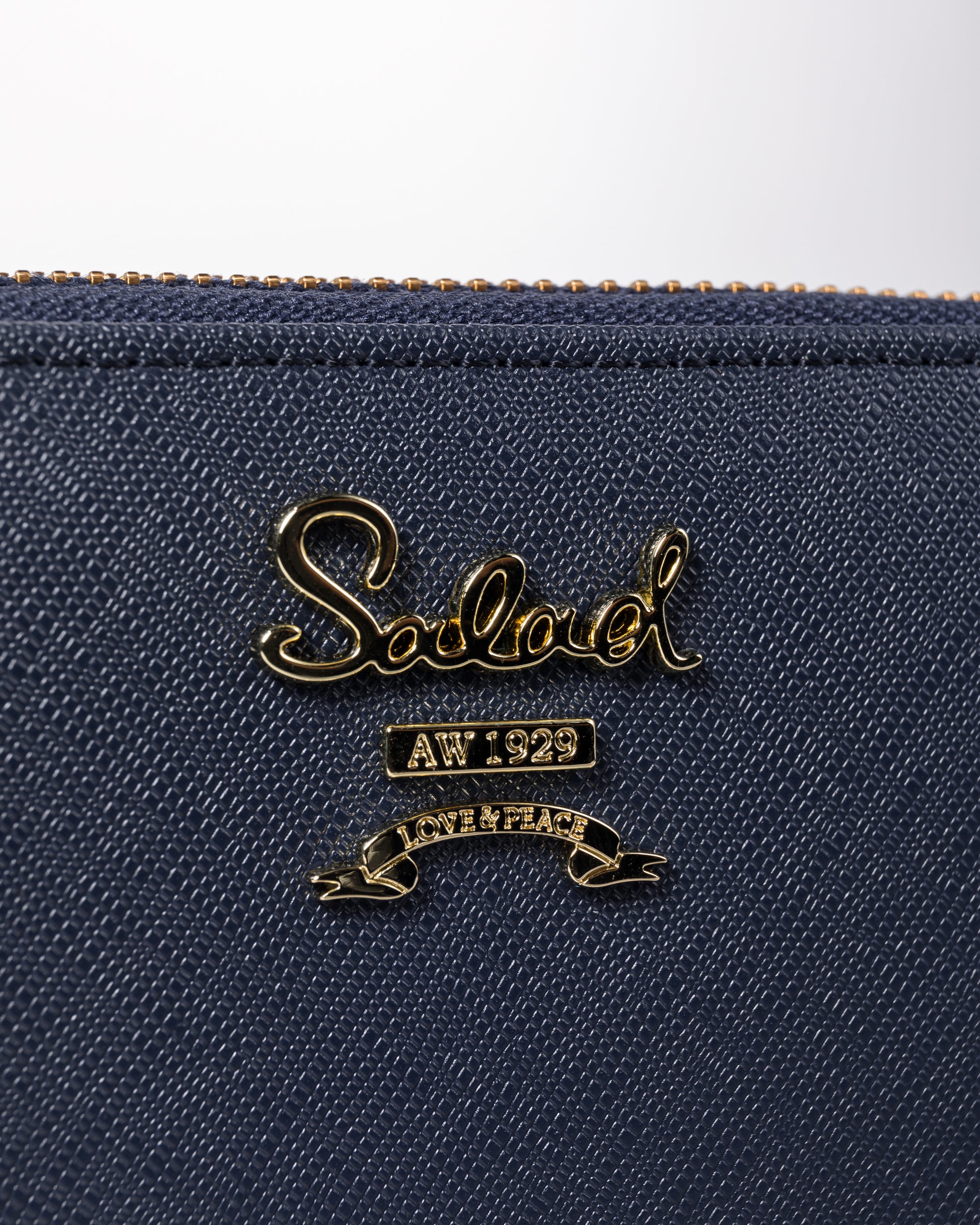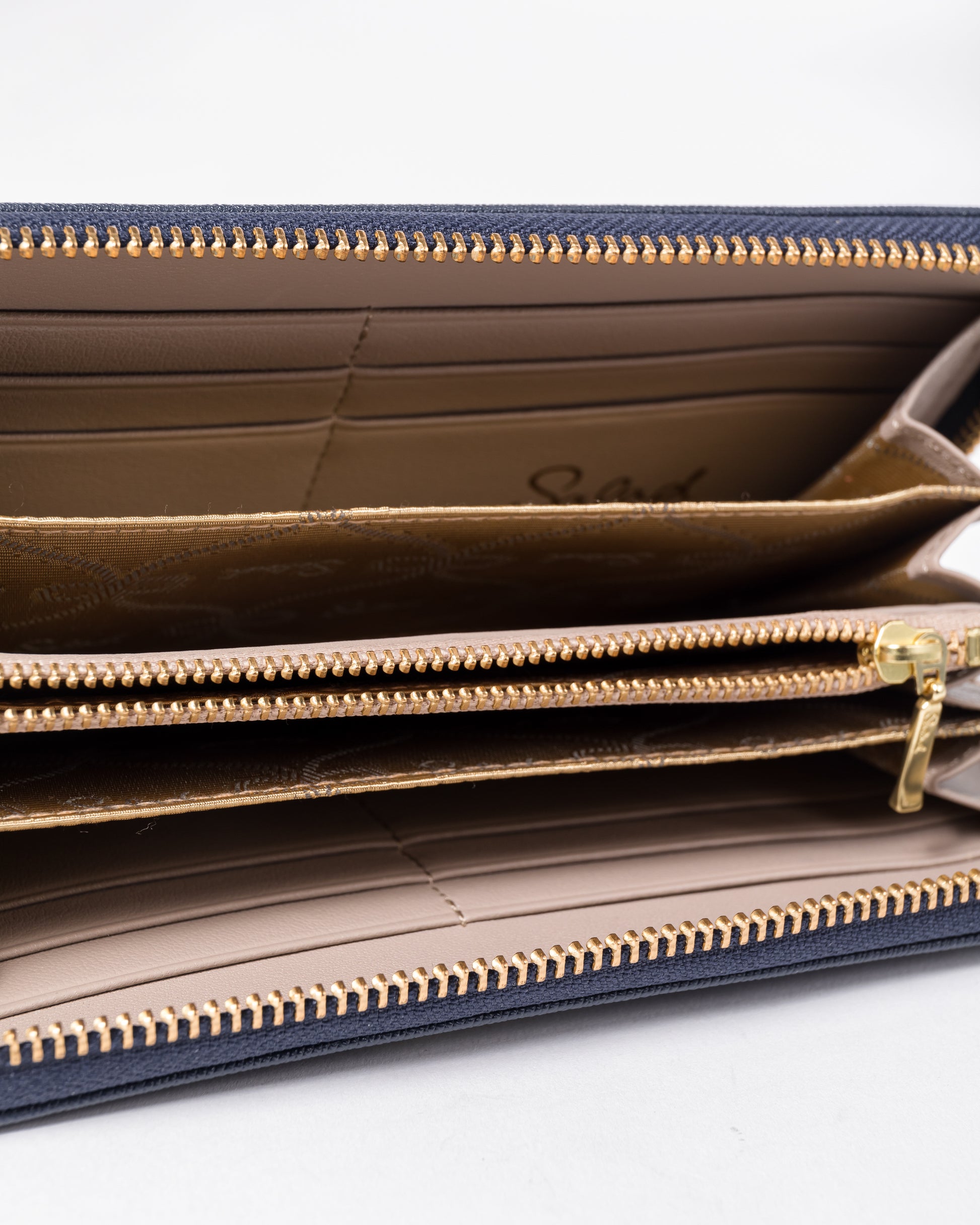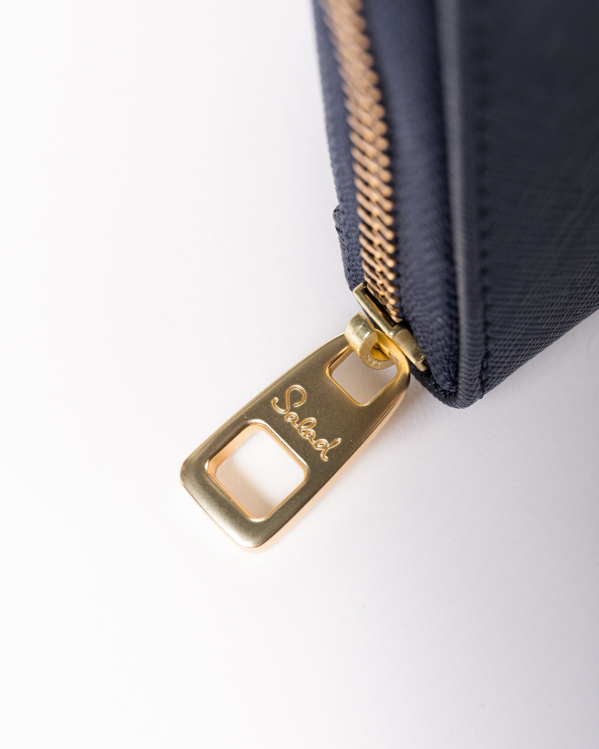 • 一個拉鏈口袋、四個信用卡夾層及一個後幅平底口插袋