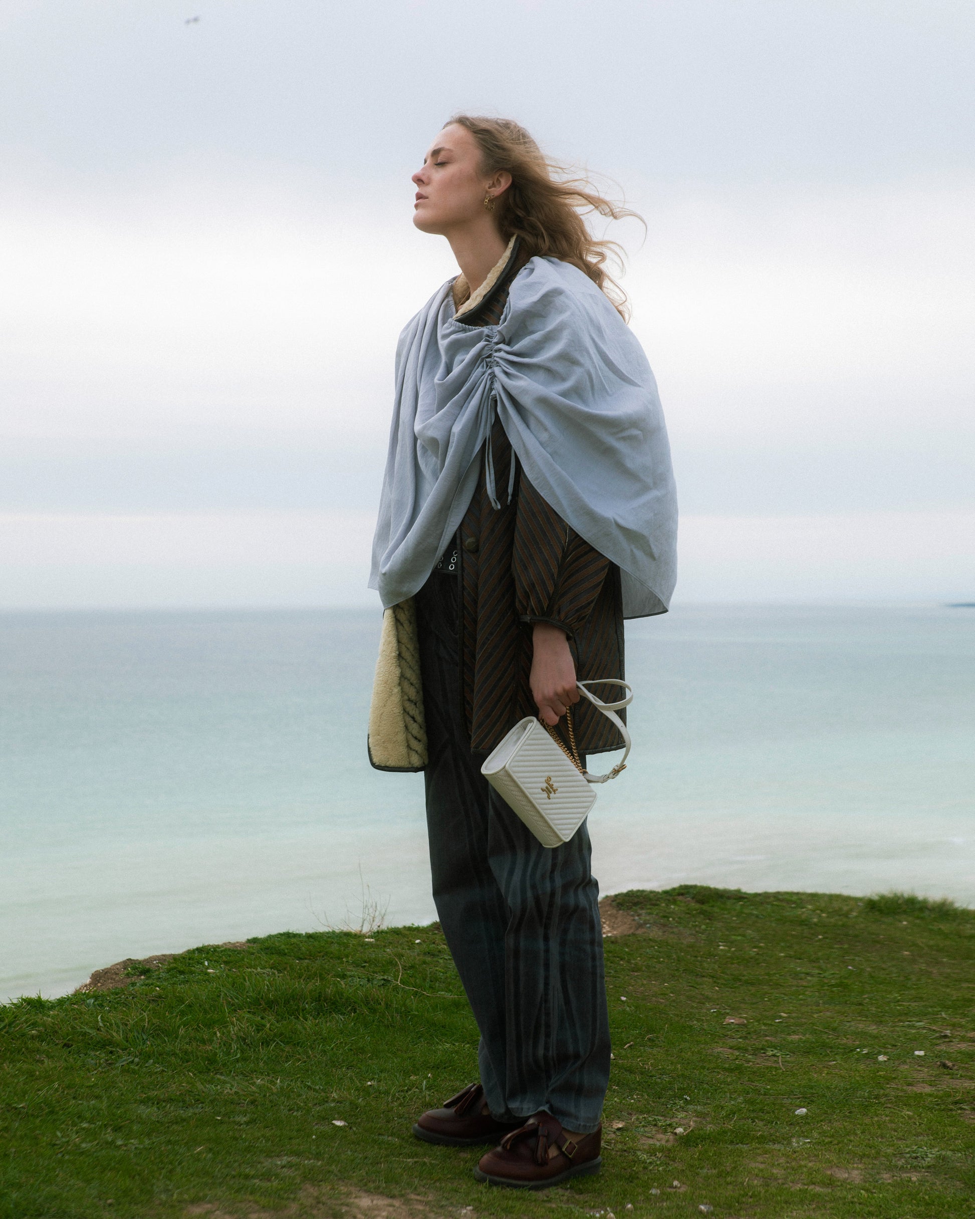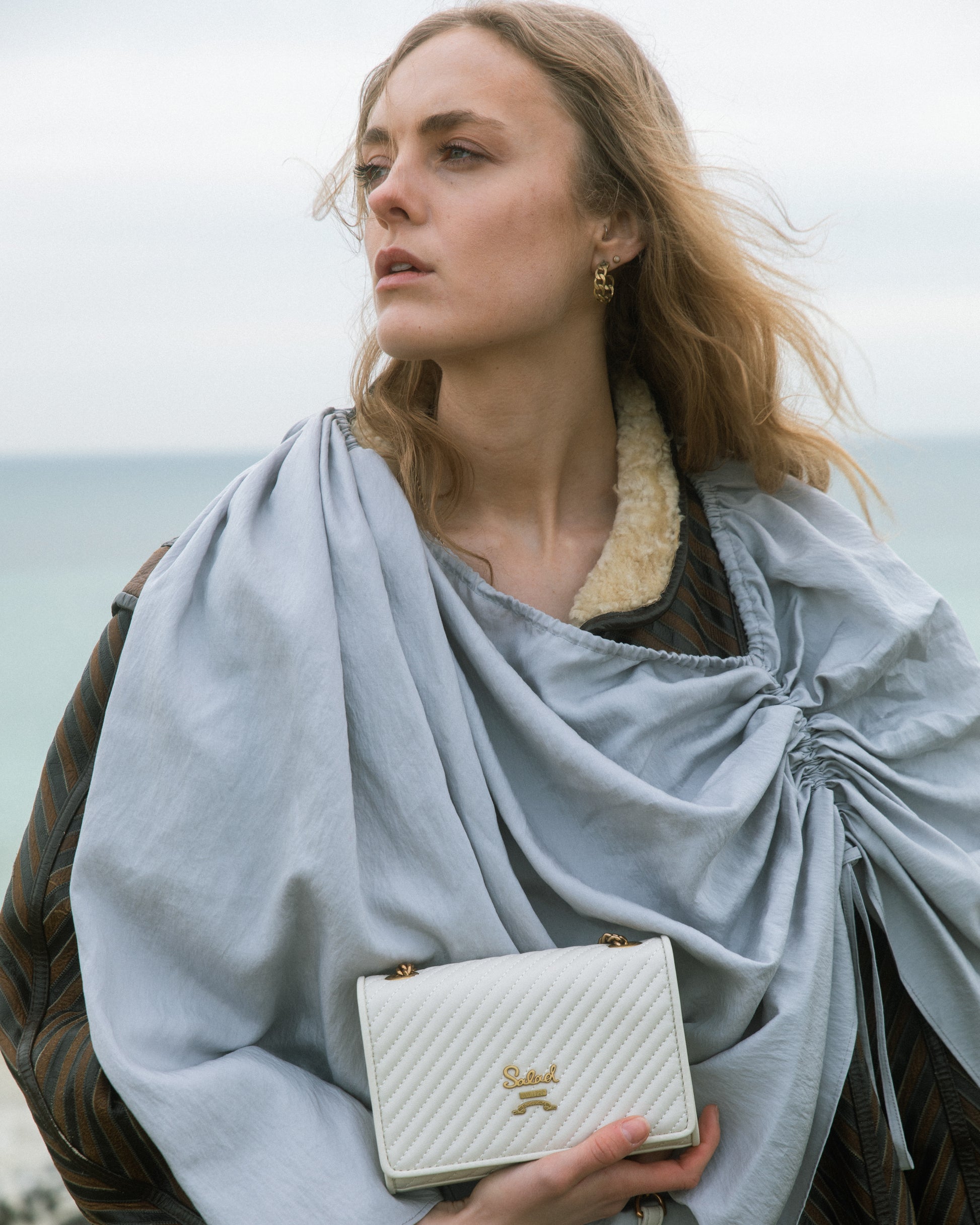 • 對角線絎縫效果綿羊皮,手感輕柔,翻蓋設計搭配磁扣開合