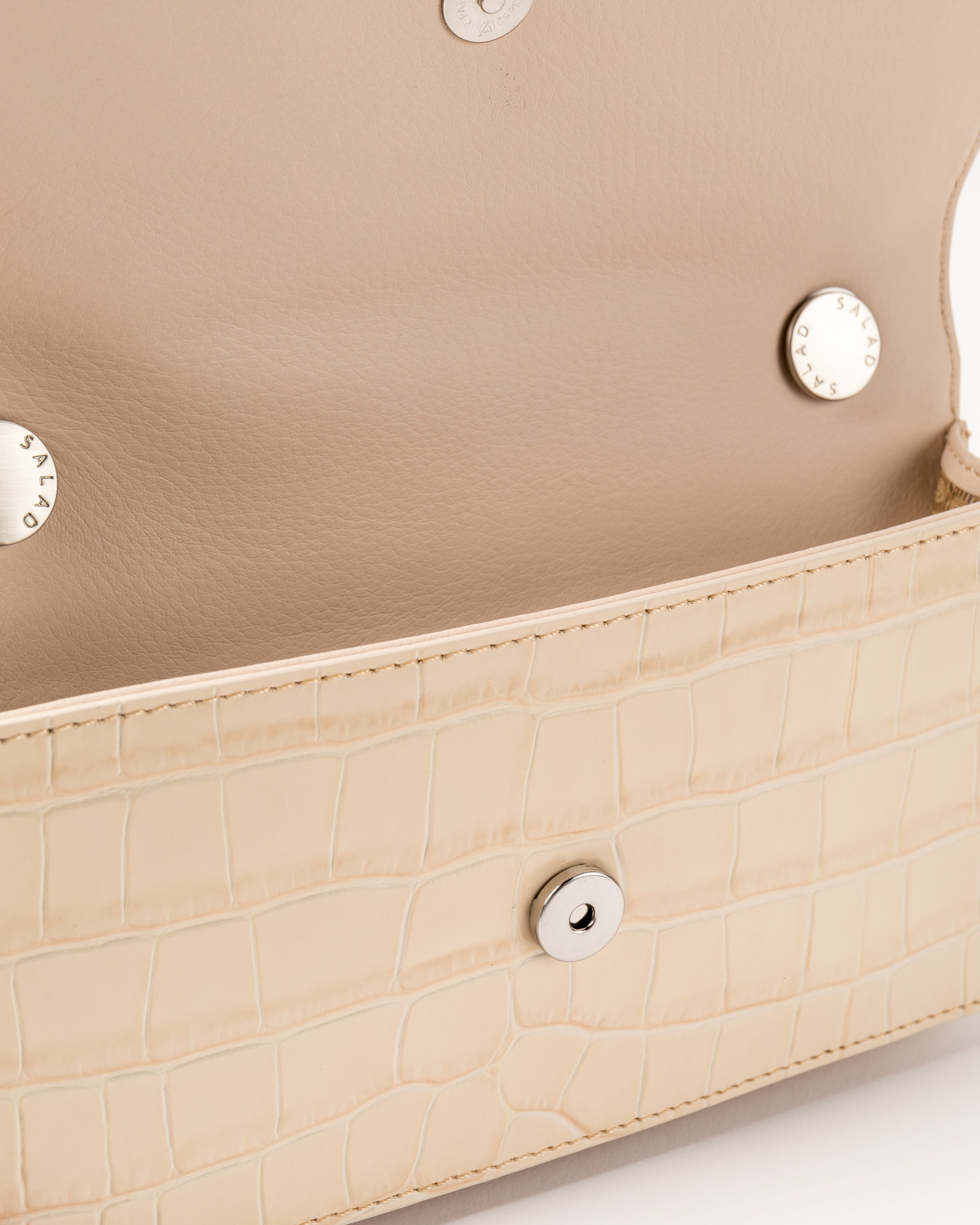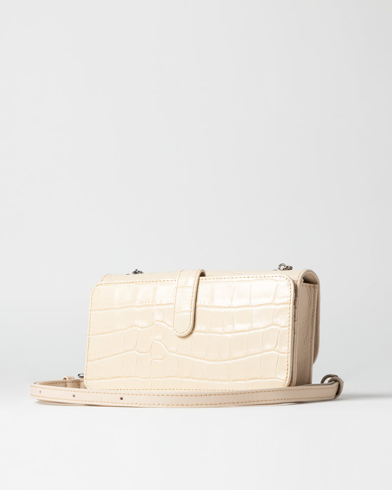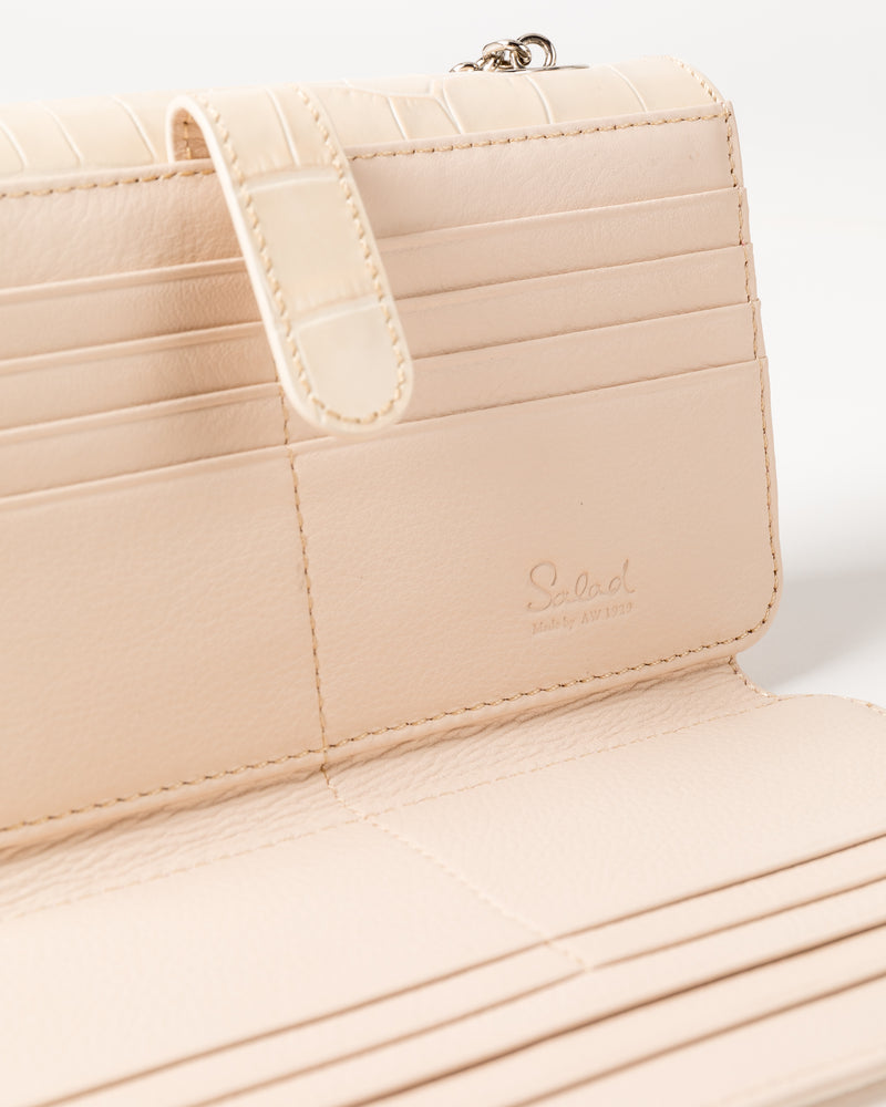 • 主袋可容納手提電話,後幅模仿銀包設計帶喼鈕開關,有10個卡槽及3個平口插袋可放紙幣