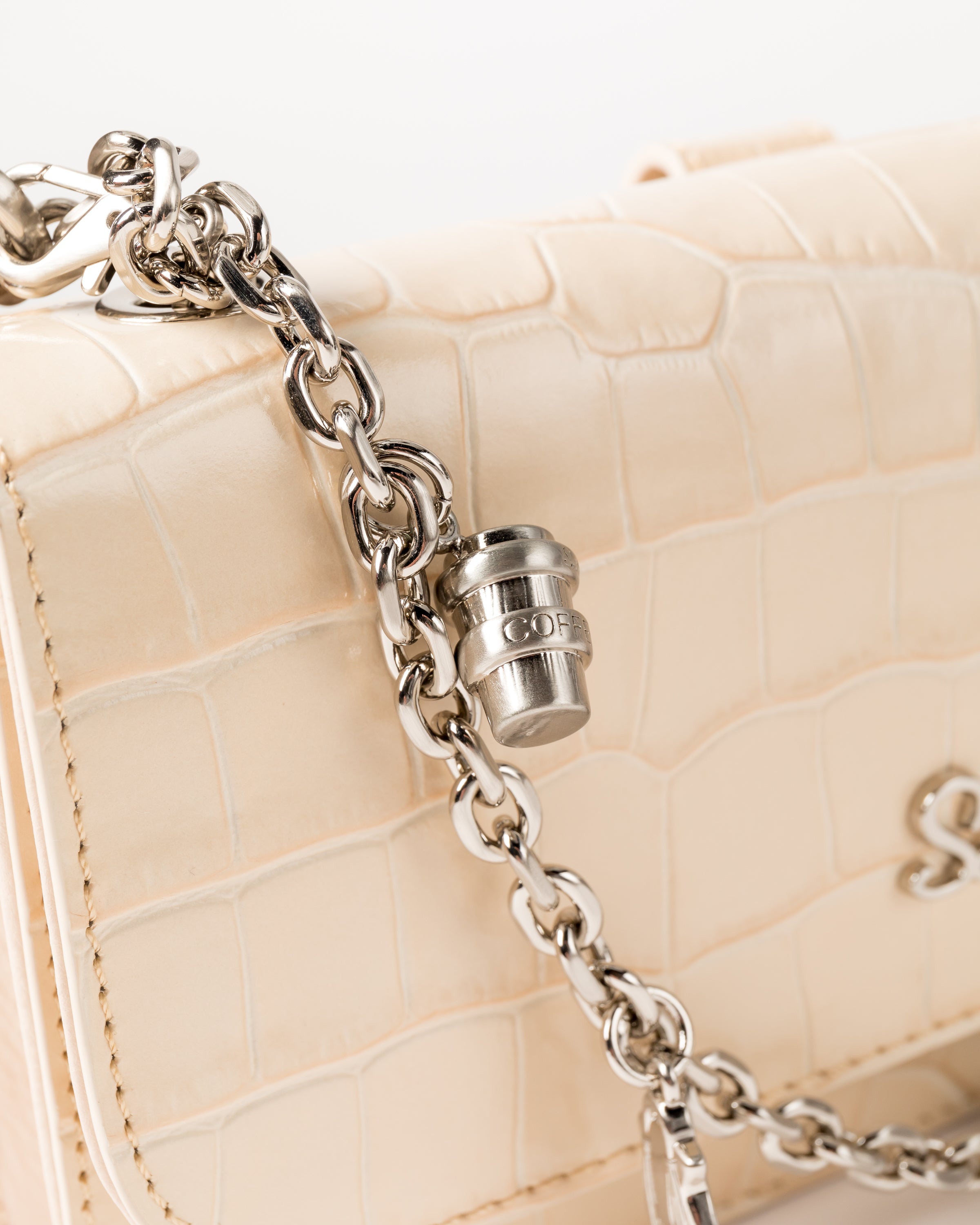 • 可調較式鏈飾皮革肩帶,無尾設計,使用時更方便順暢