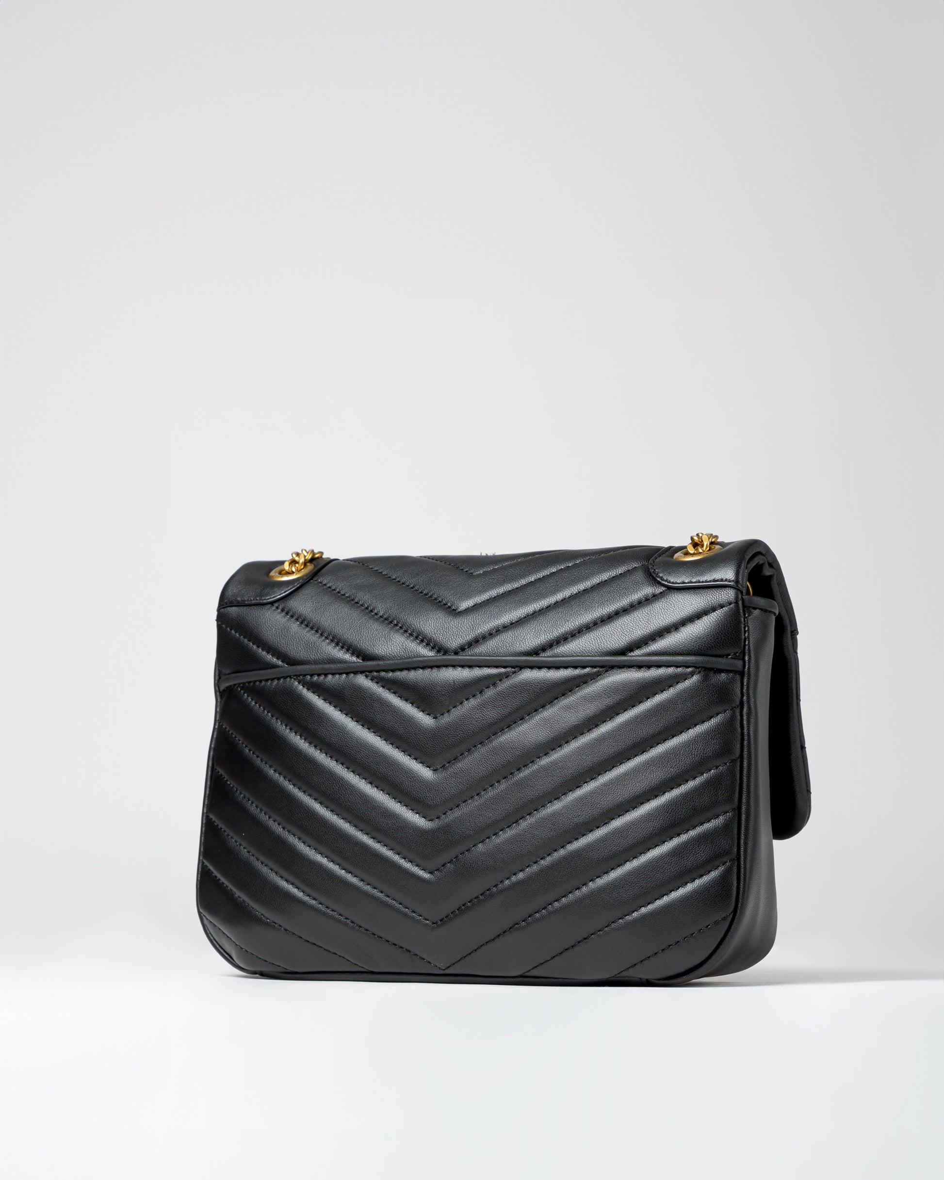 • 金屬鏈和皮革配搭的可轉換肩帶,可斜挎,亦可以雙鏈帶肩揹