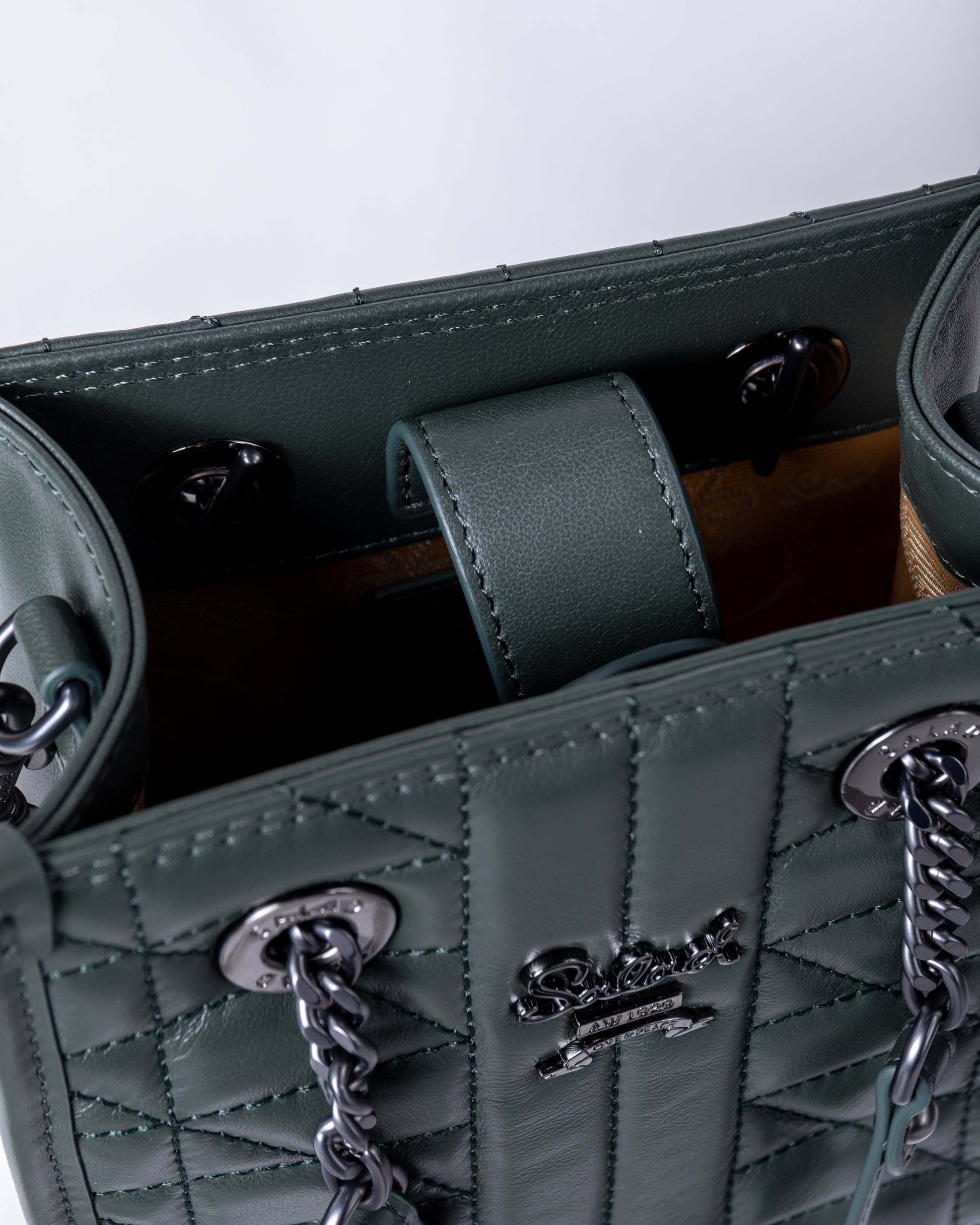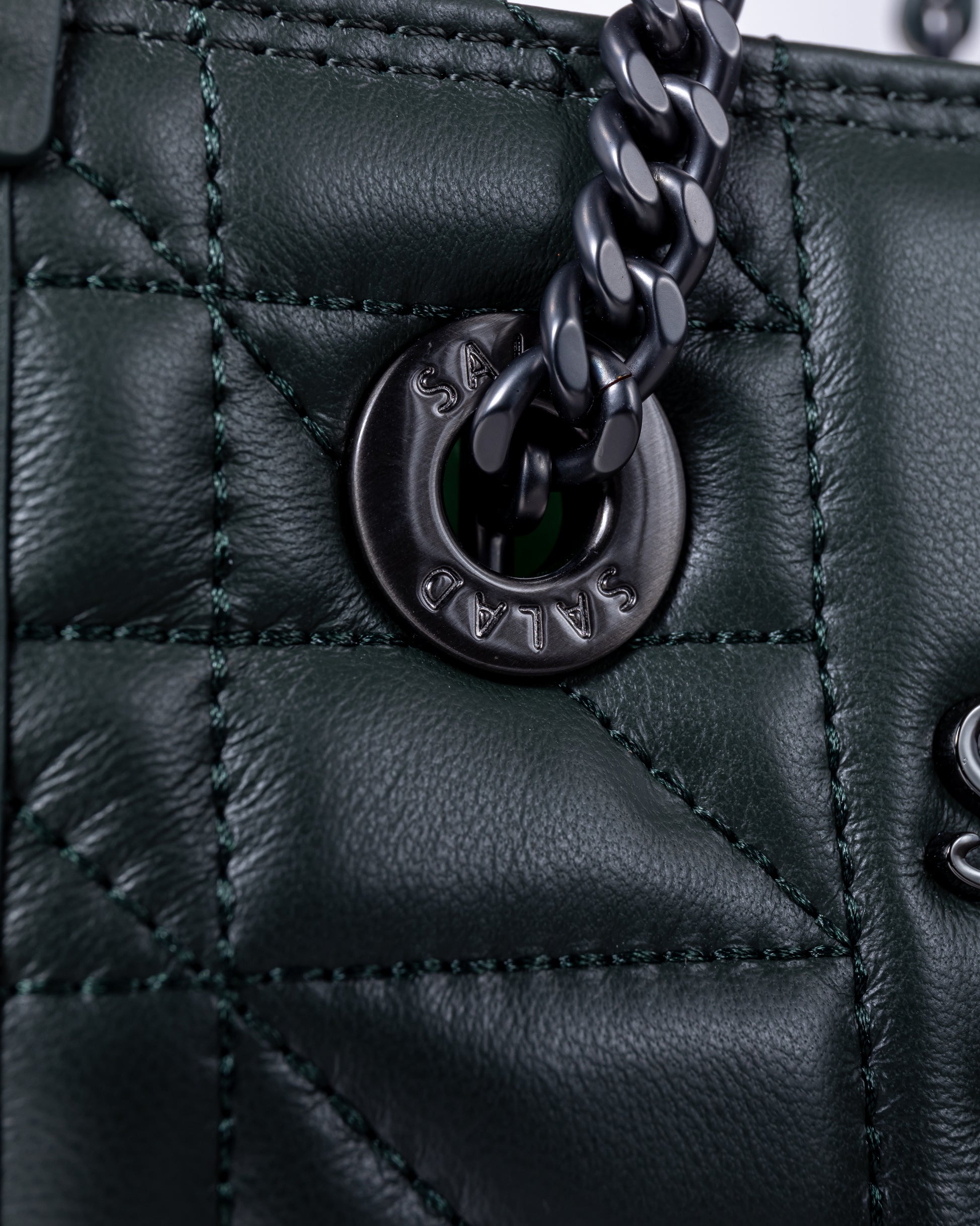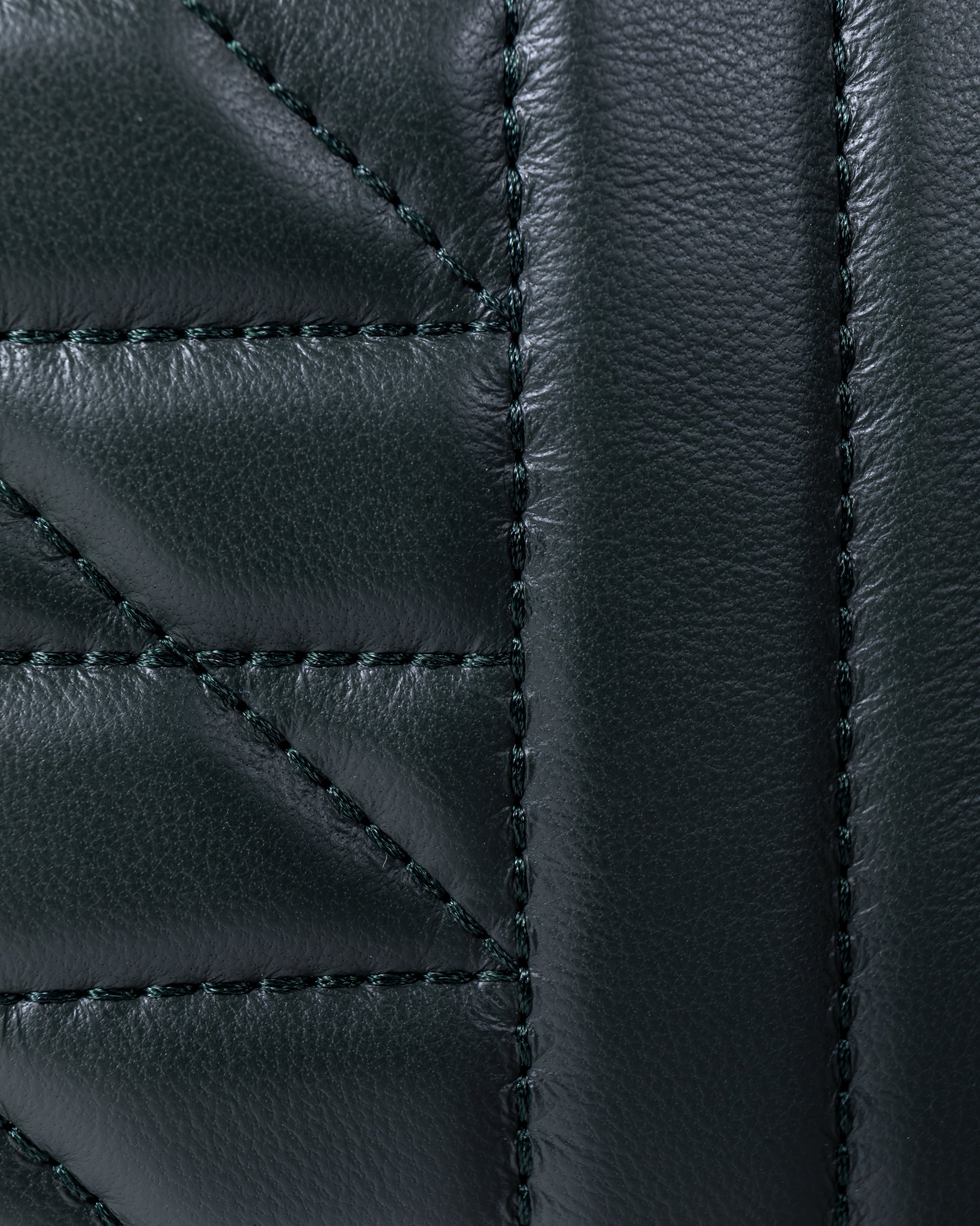 • 絎縫皮革表面效果,主隔層採用磁鈕開合,帶雙手挽