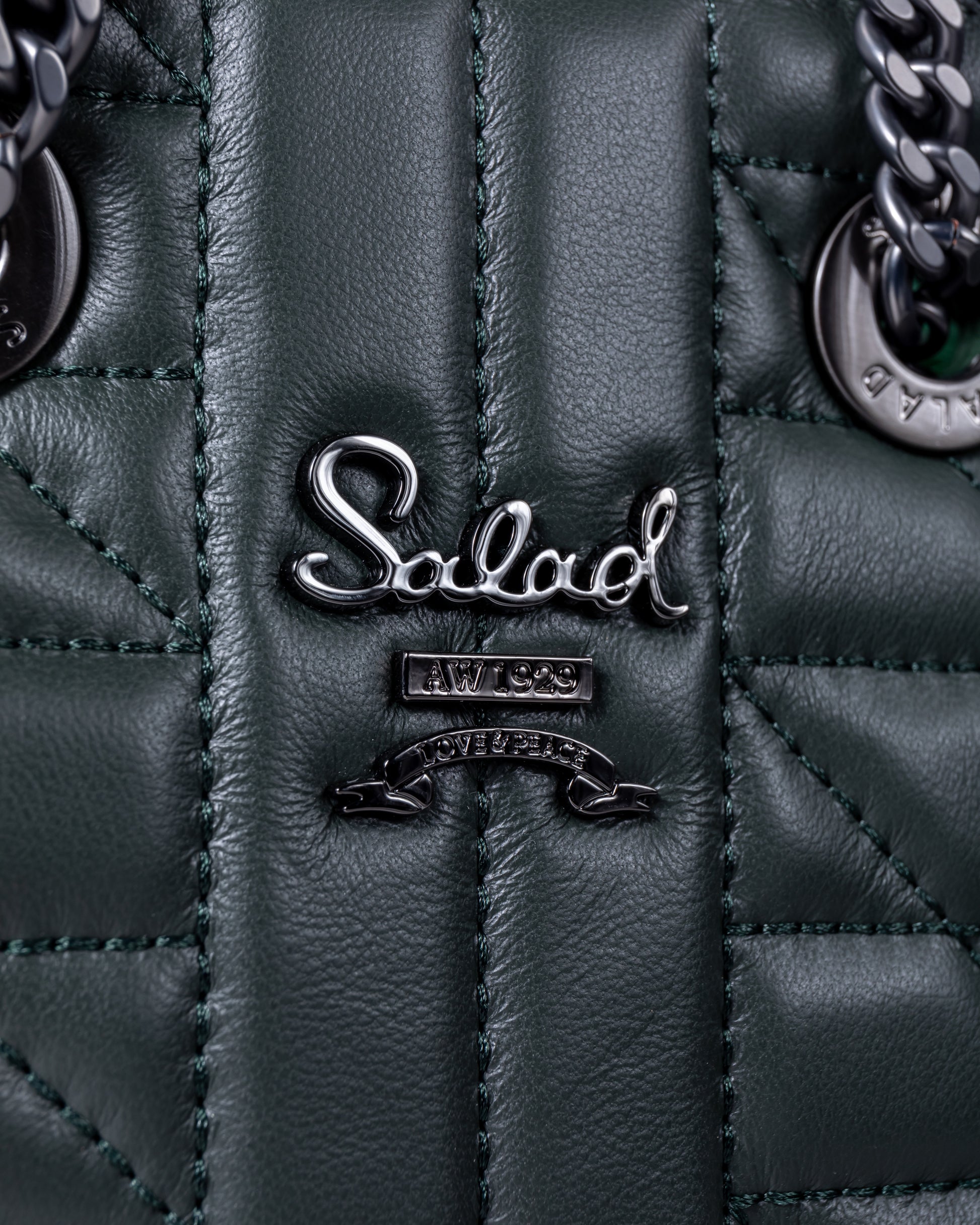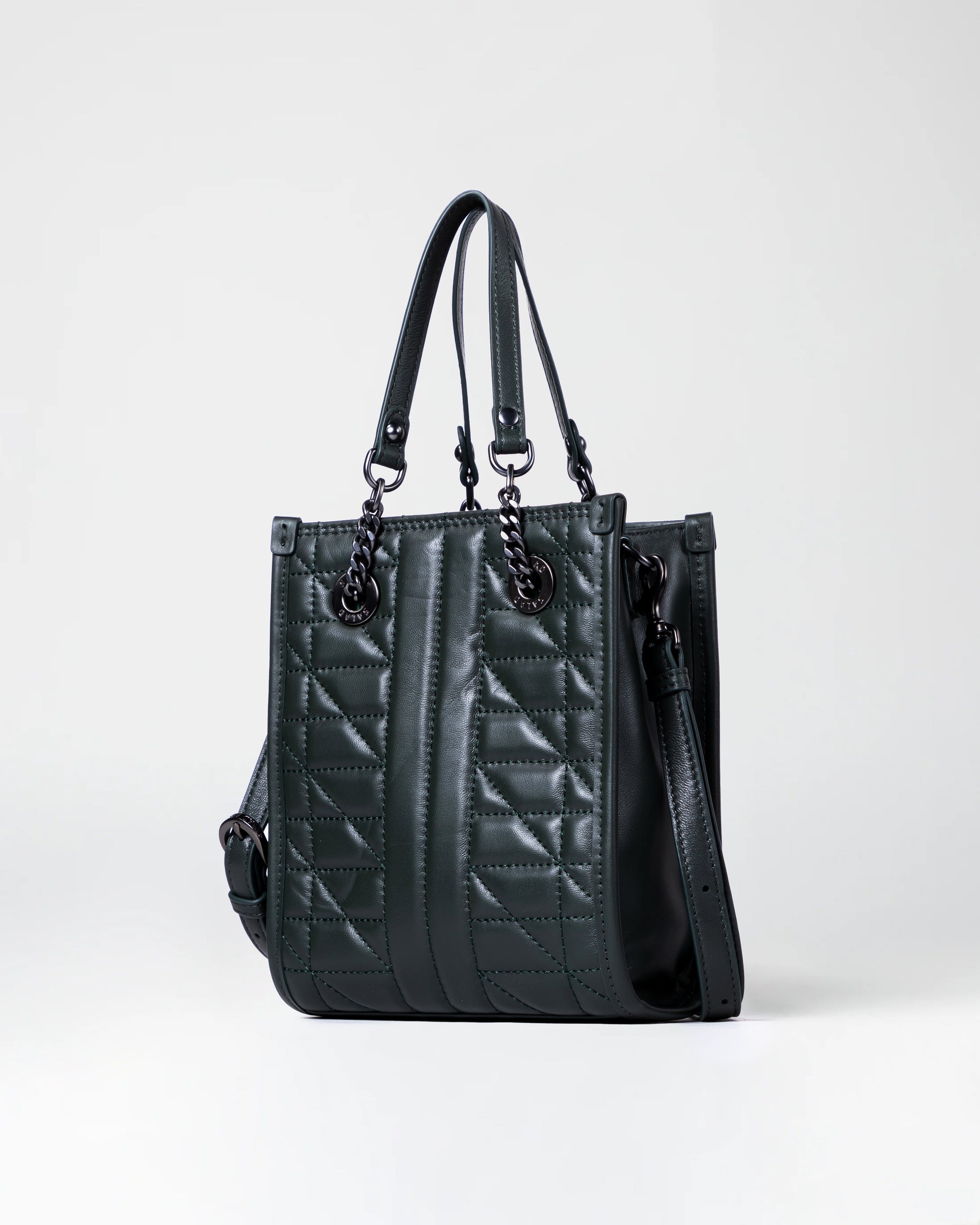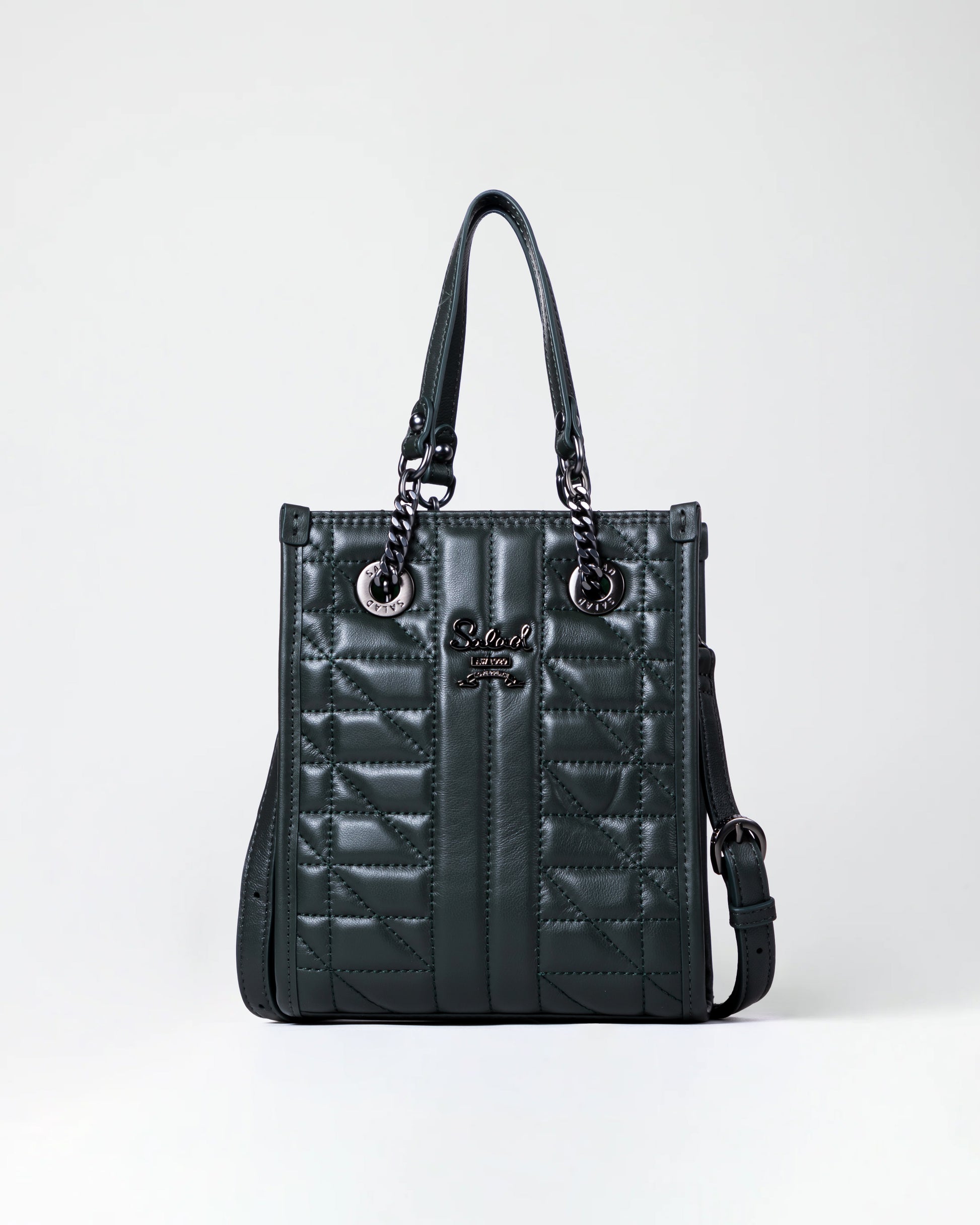 • 絎縫皮革表面效果,主隔層採用磁鈕開合,帶雙手挽