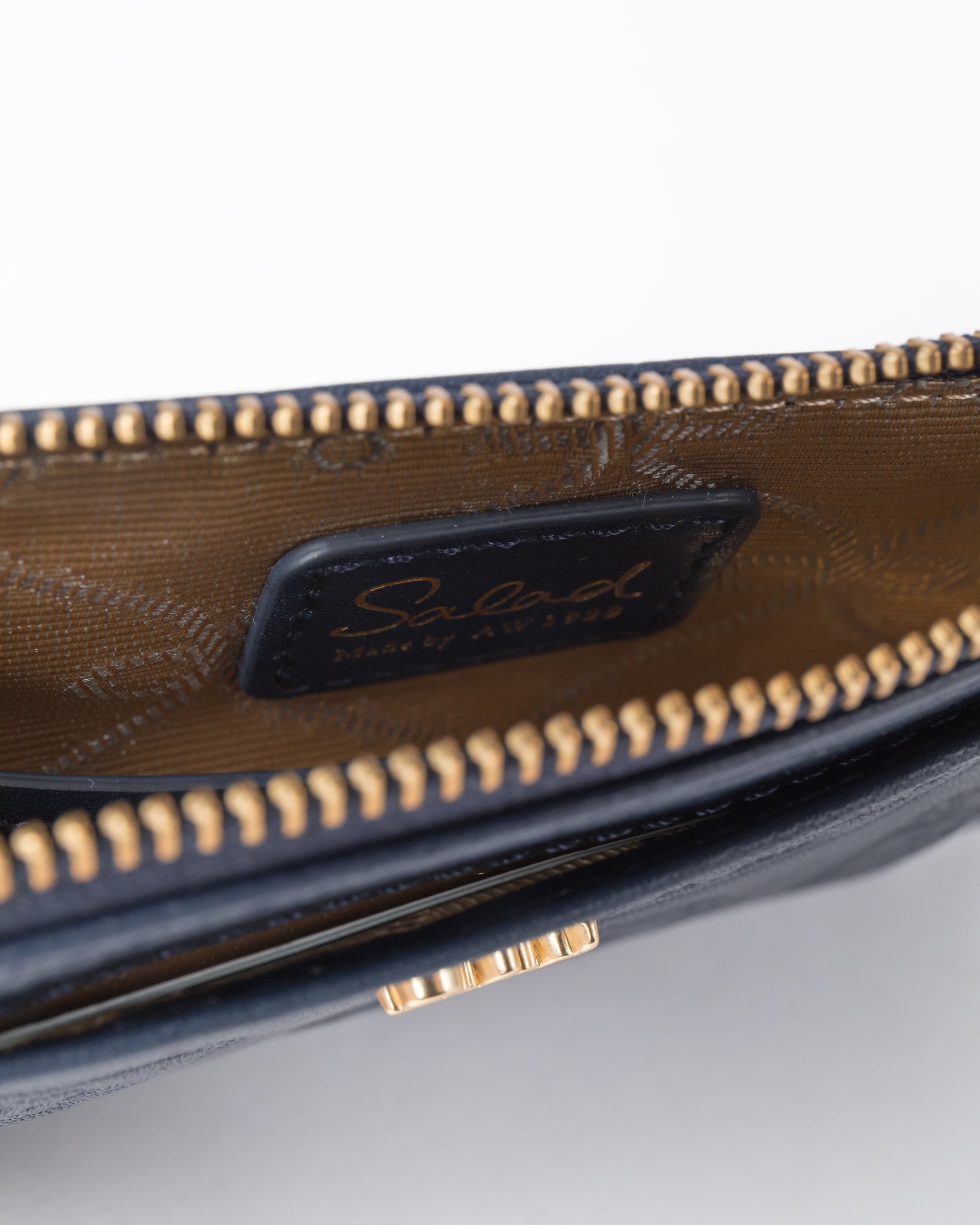 • 拉鍊開合附有金屬吊飾,正面一個平插卡及兩個信用卡插