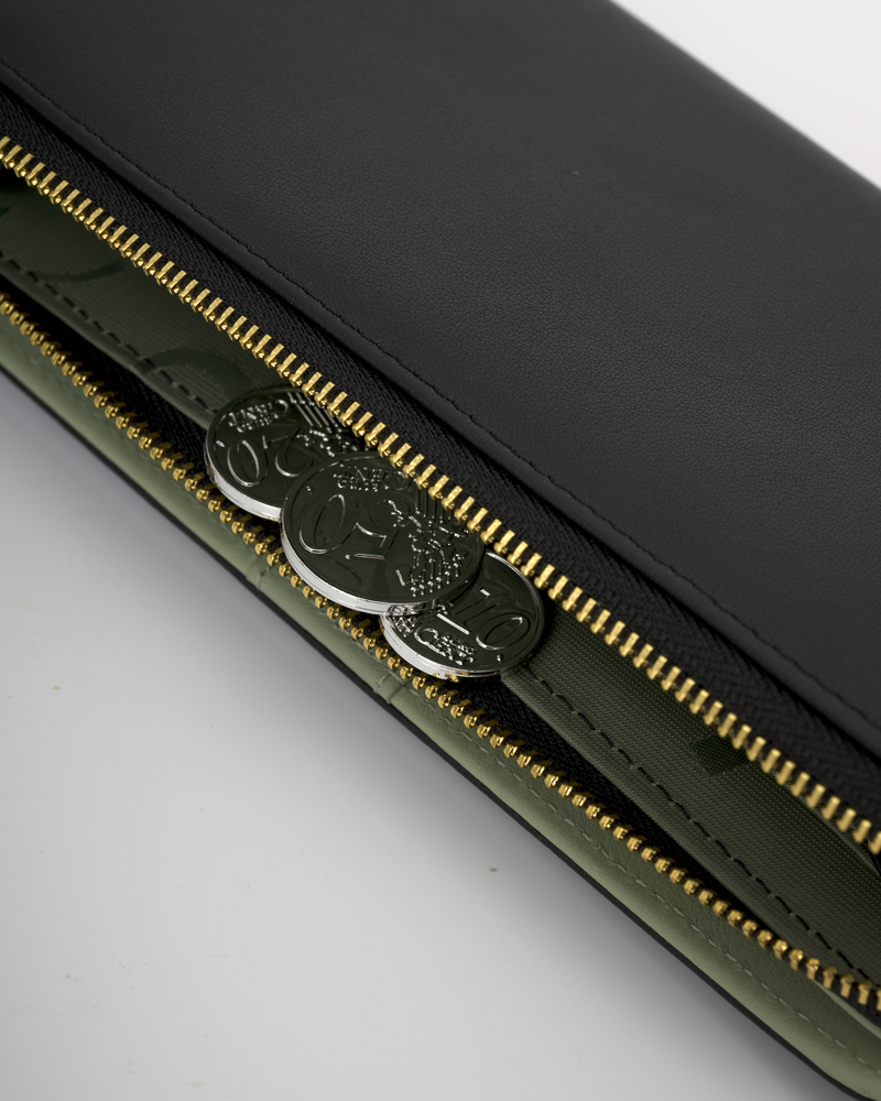 • 拉鍊袋內有四個隔層,可放鈔票及錢幣