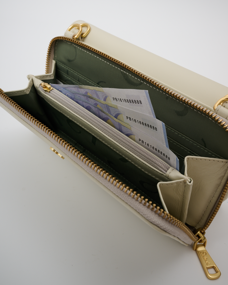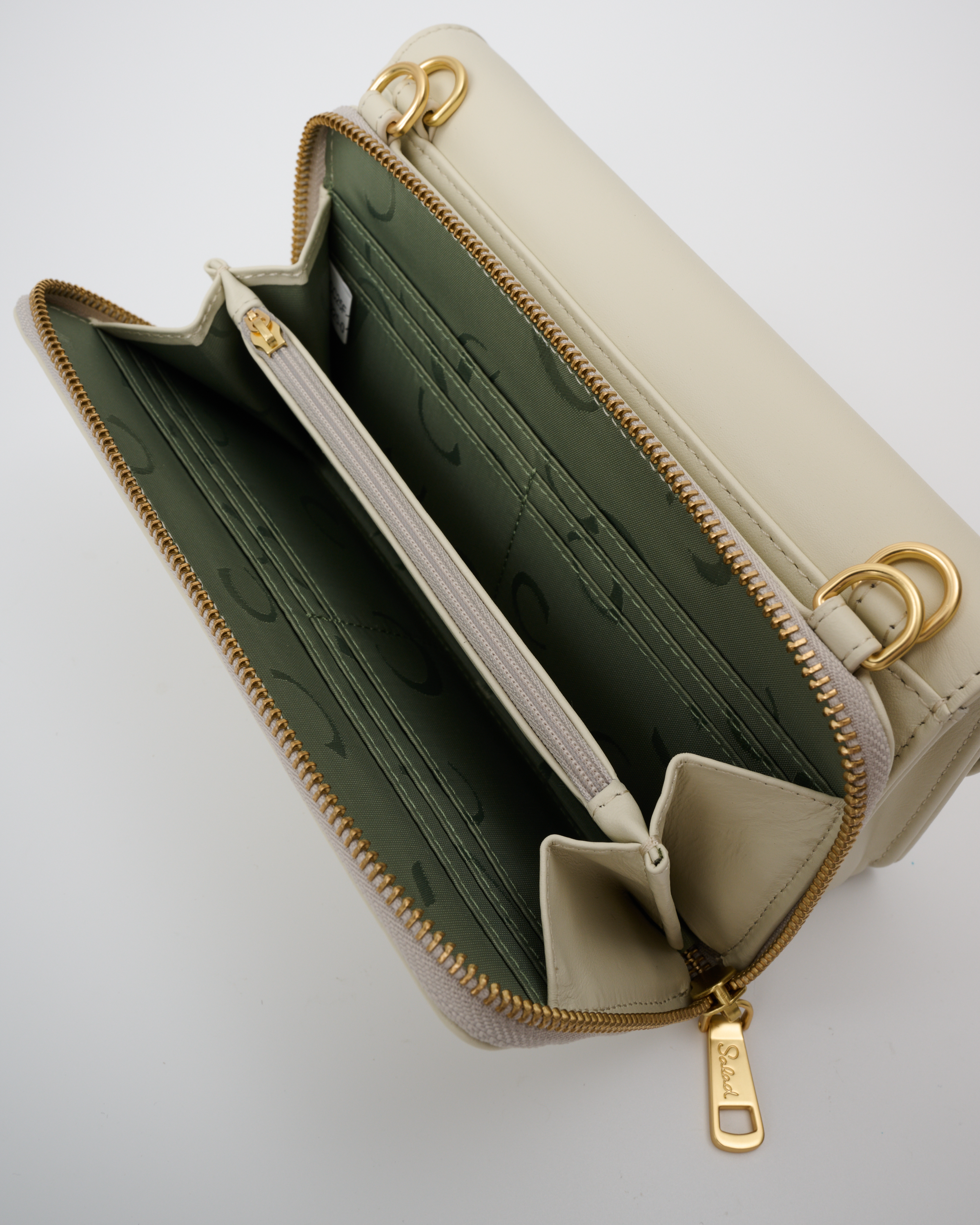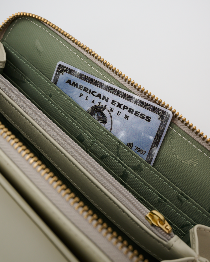 • 後隔層內有兩個鈔票隔層、八個信用卡套及一個拉鏈袋