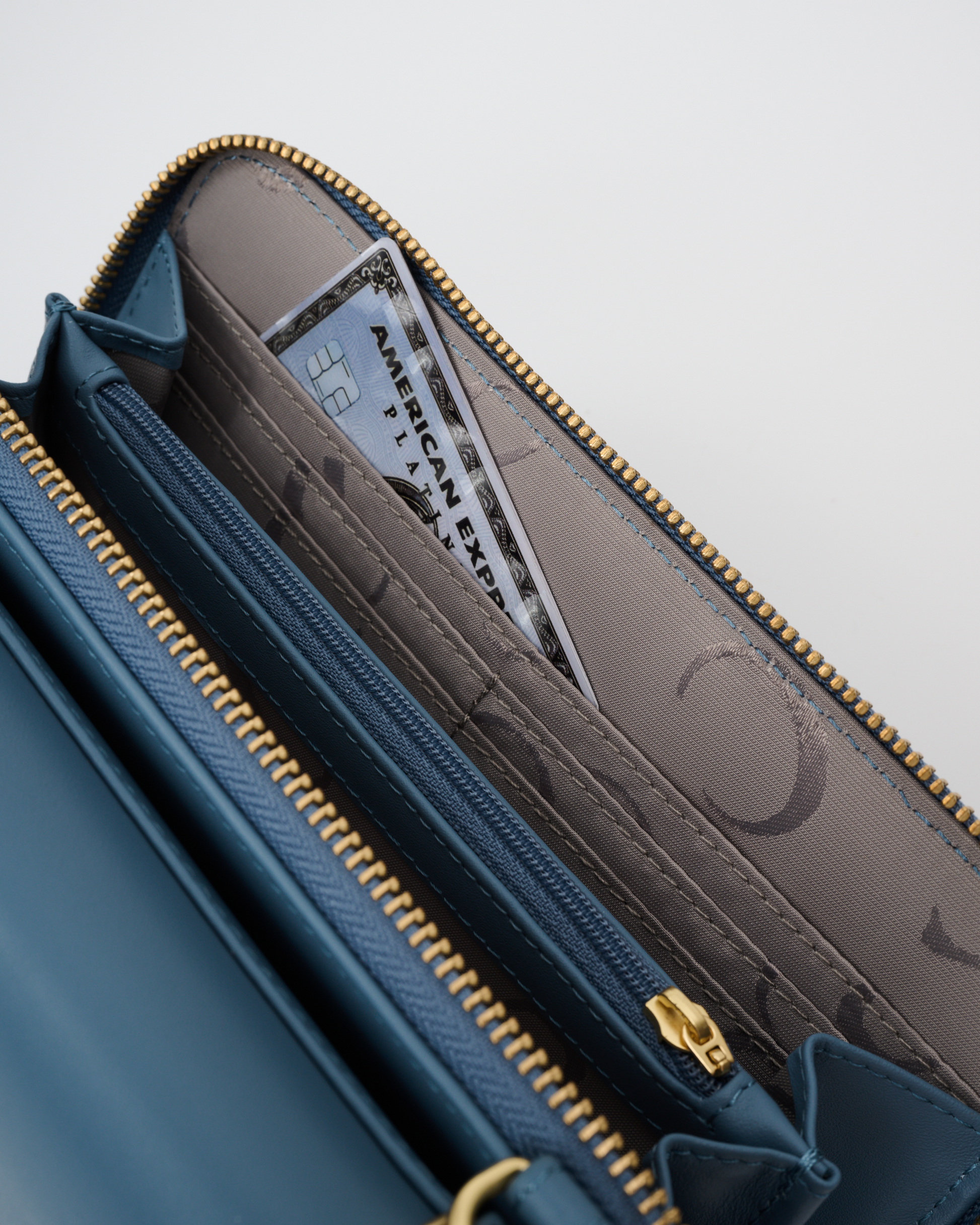 • 後隔層內有兩個鈔票隔層、八個信用卡套及一個拉鏈袋