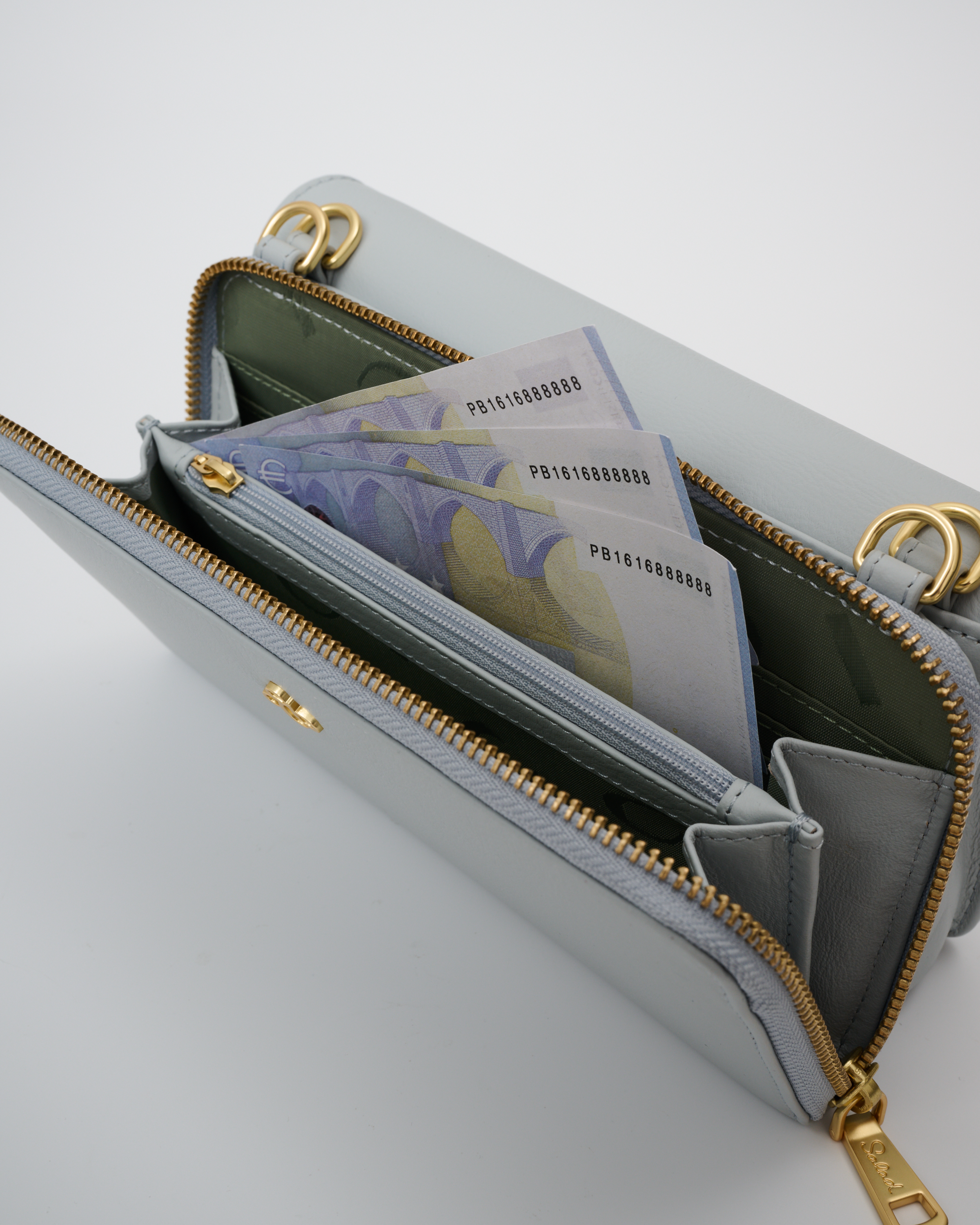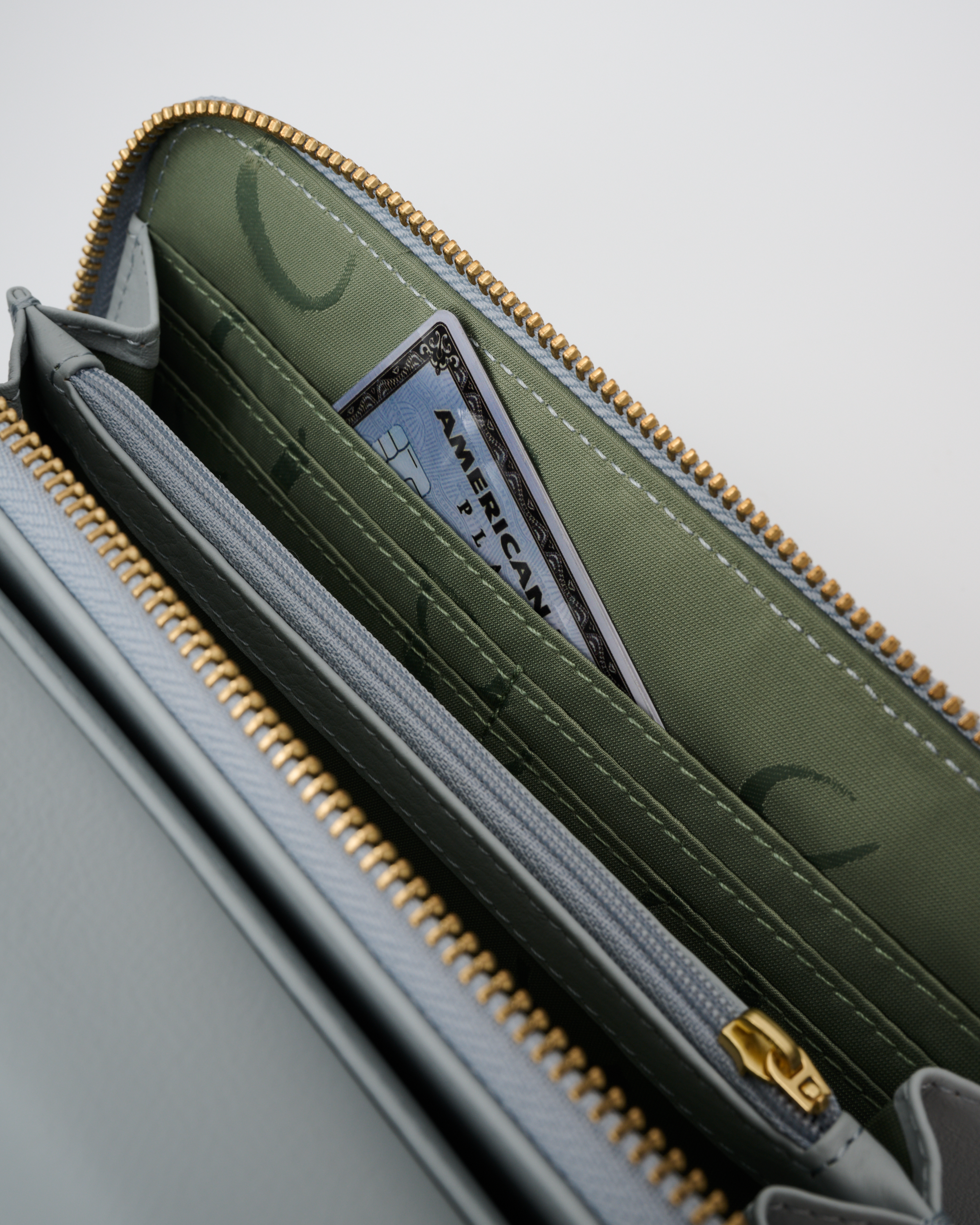 • 後隔層內有兩個鈔票隔層、八個信用卡套及一個拉鏈袋