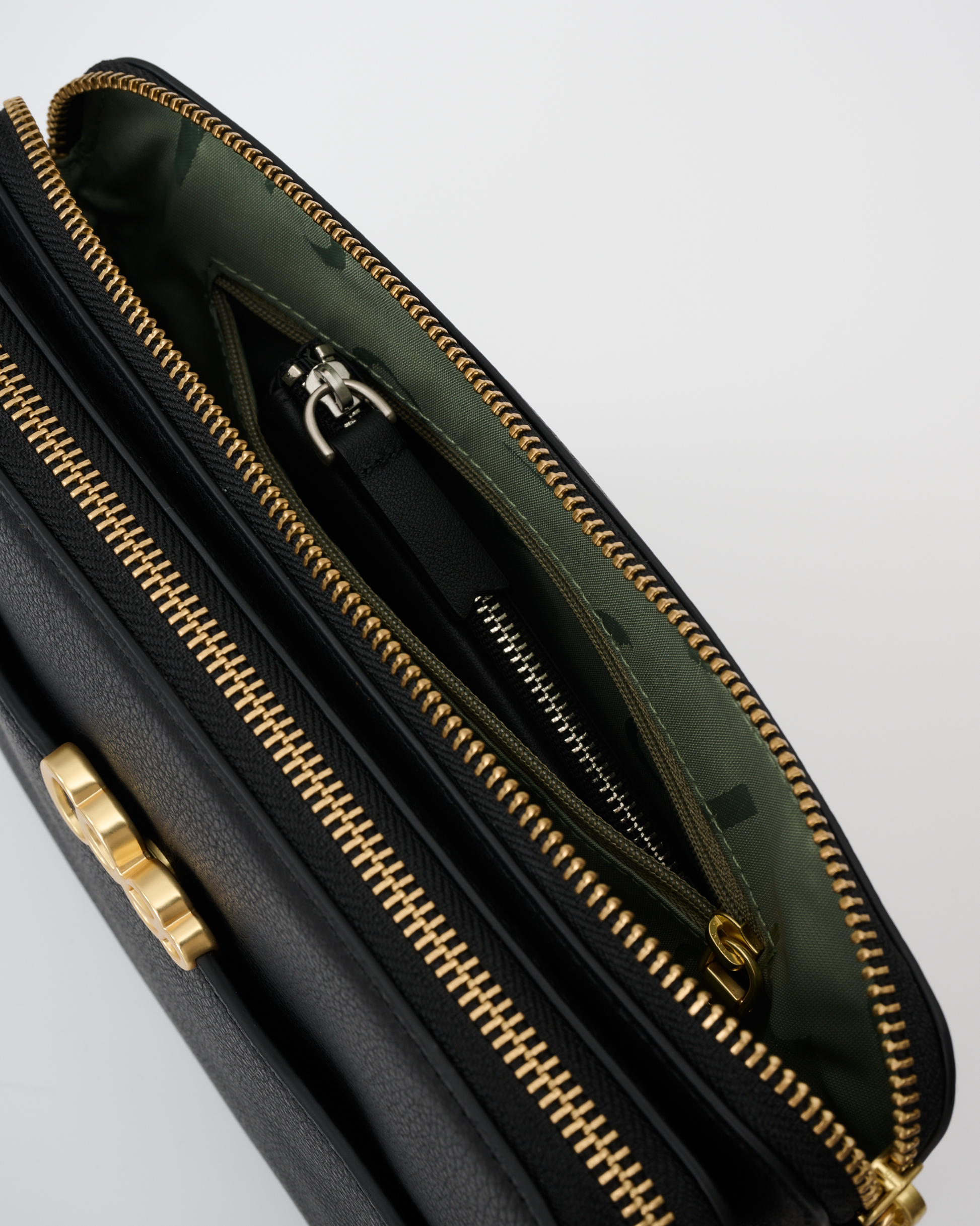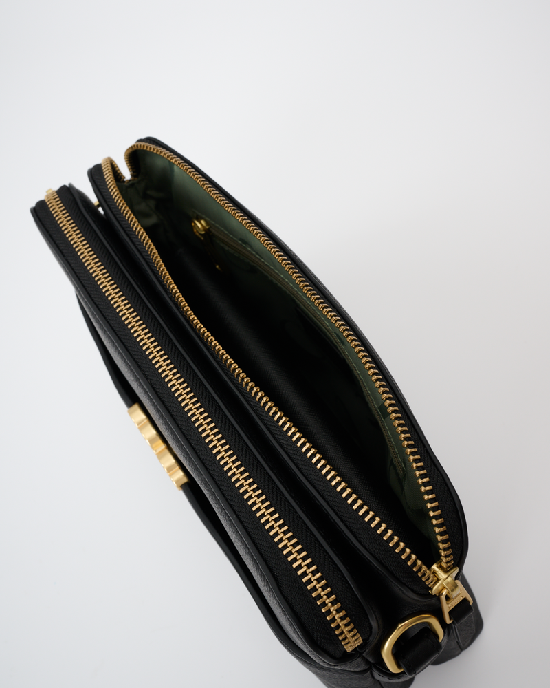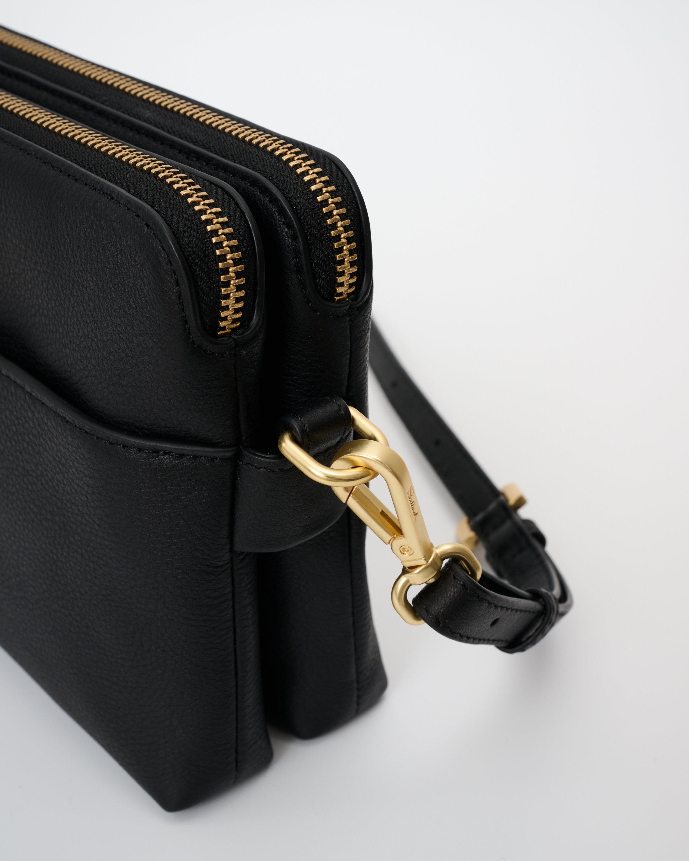 • 配有可調節式皮革肩帶,肩帶可拆除