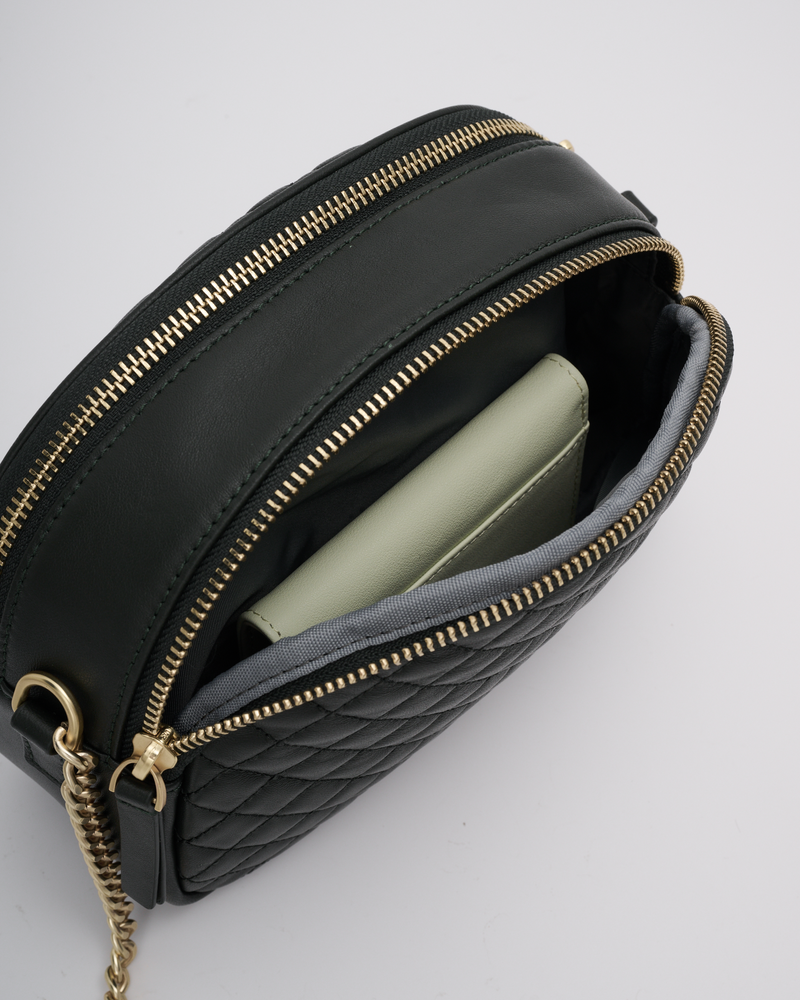 • 備有飾鏈皮革肩帶:增添時尚感與舒適度