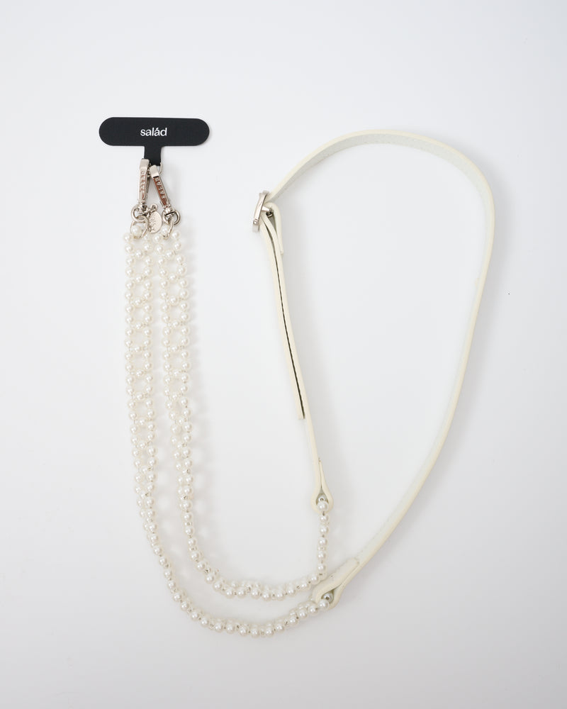 • 可調節式壓鱷魚紋皮肩帶配珍珠飾鏈