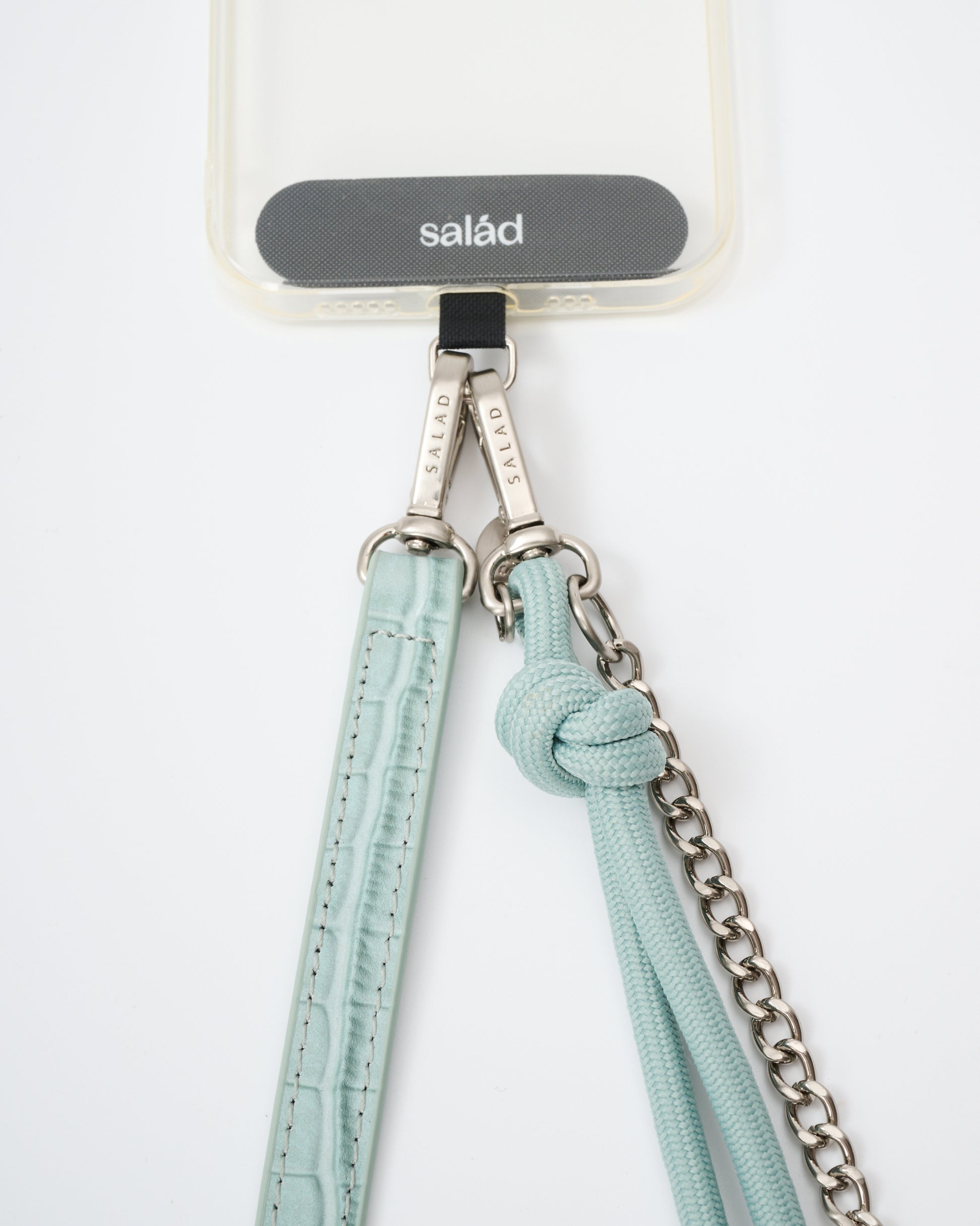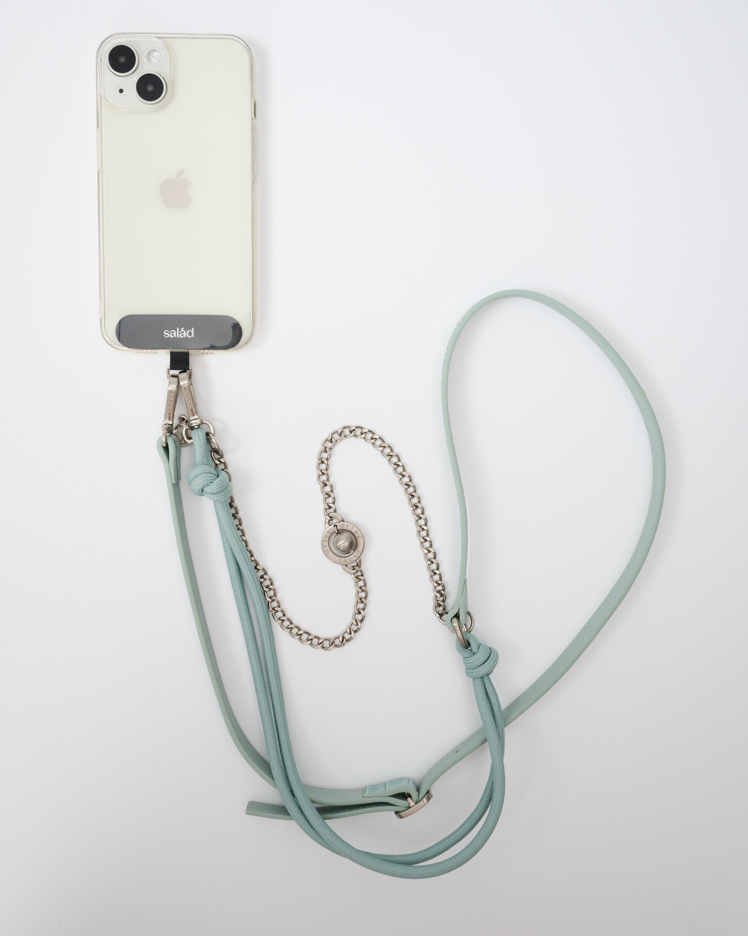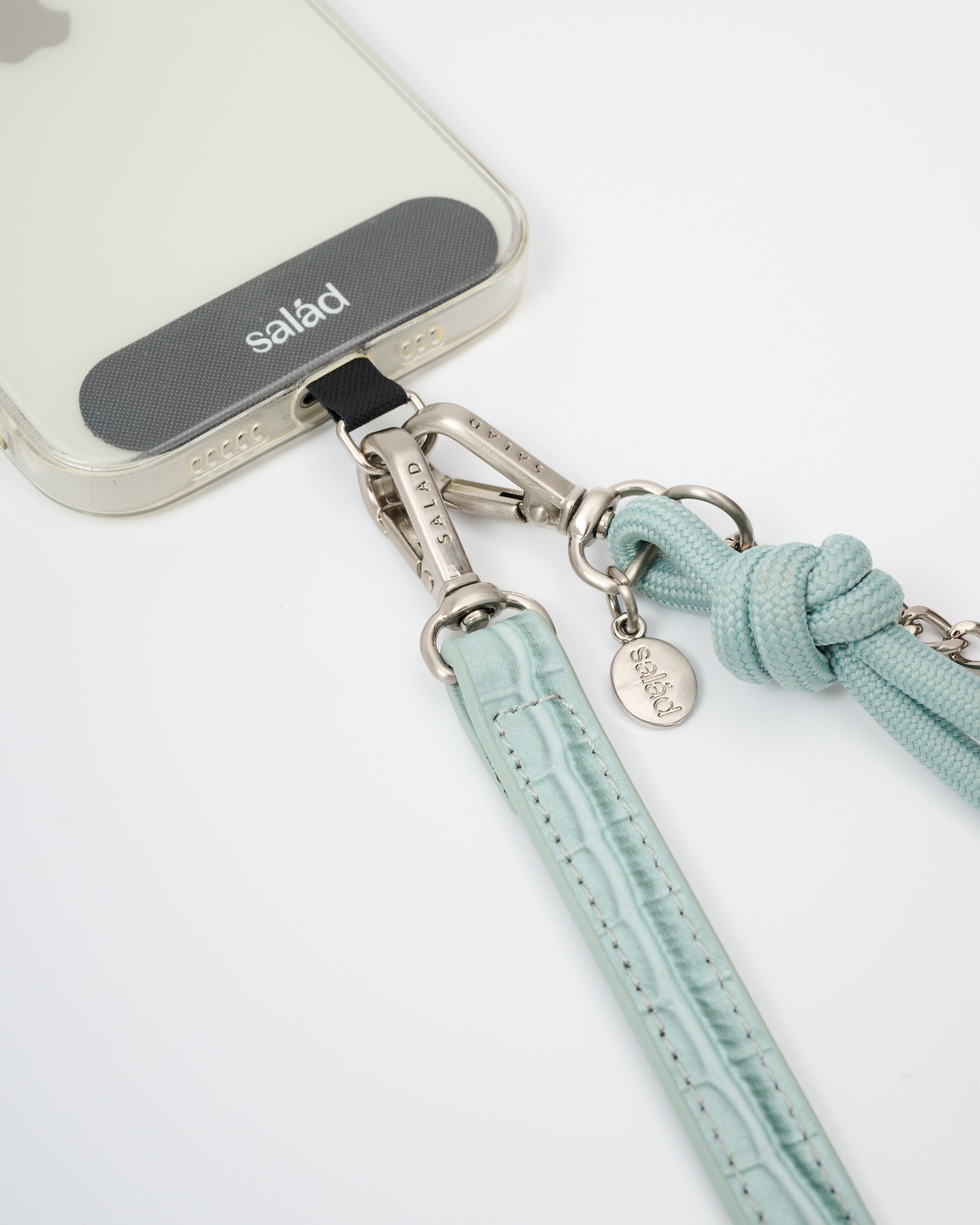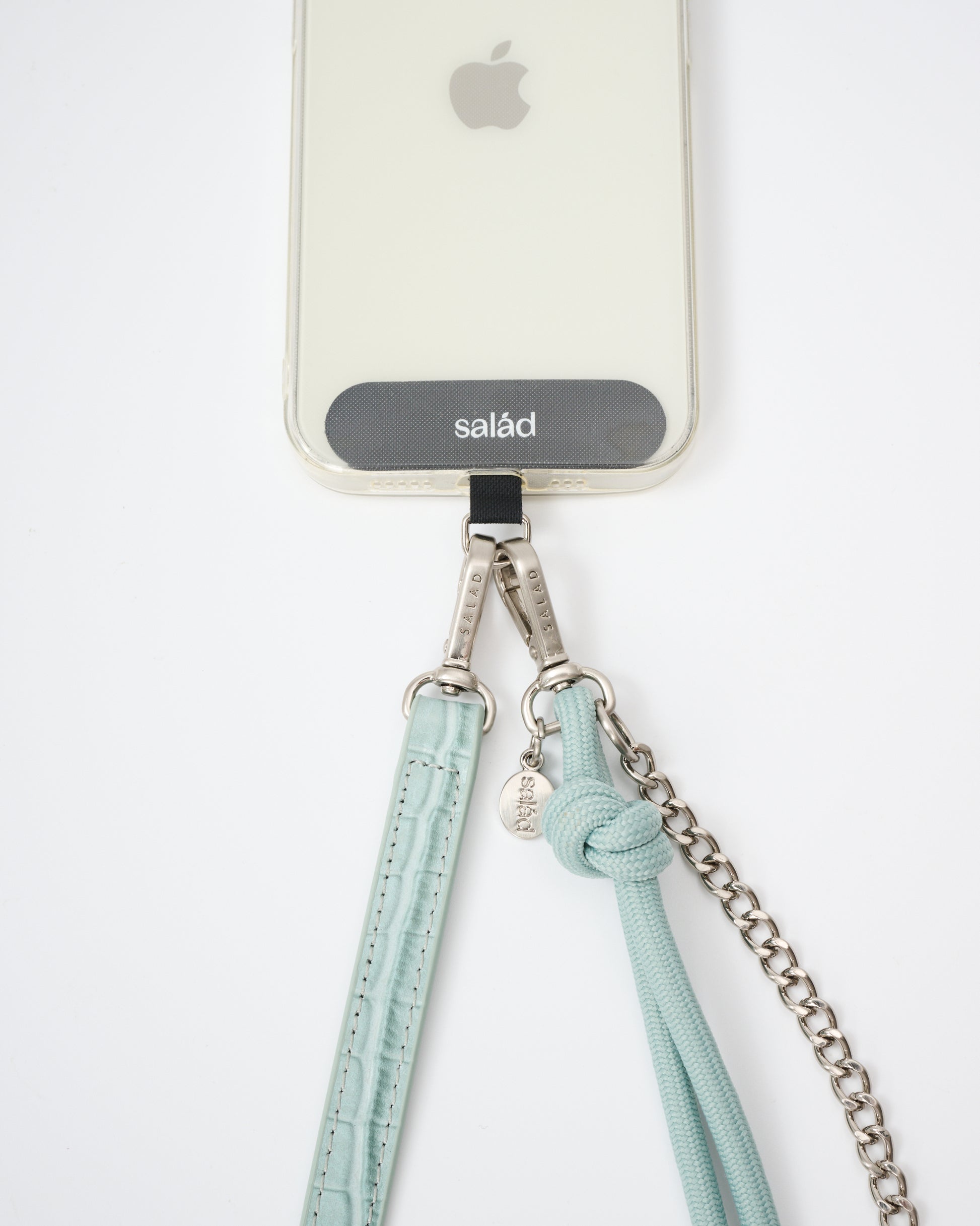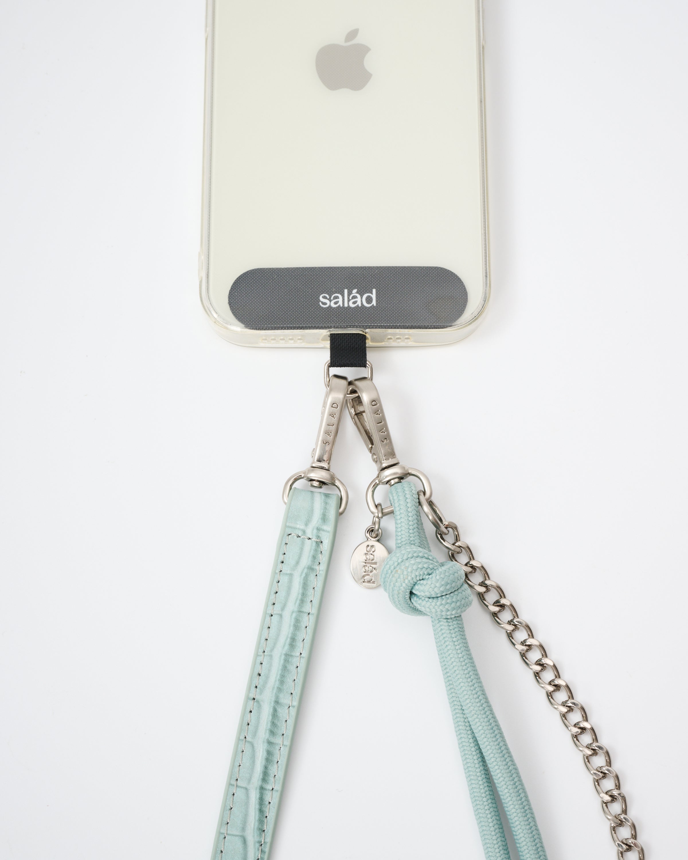 • 附送手機掛繩膠片,印有品牌"Salad"商標,展現品牌特色
