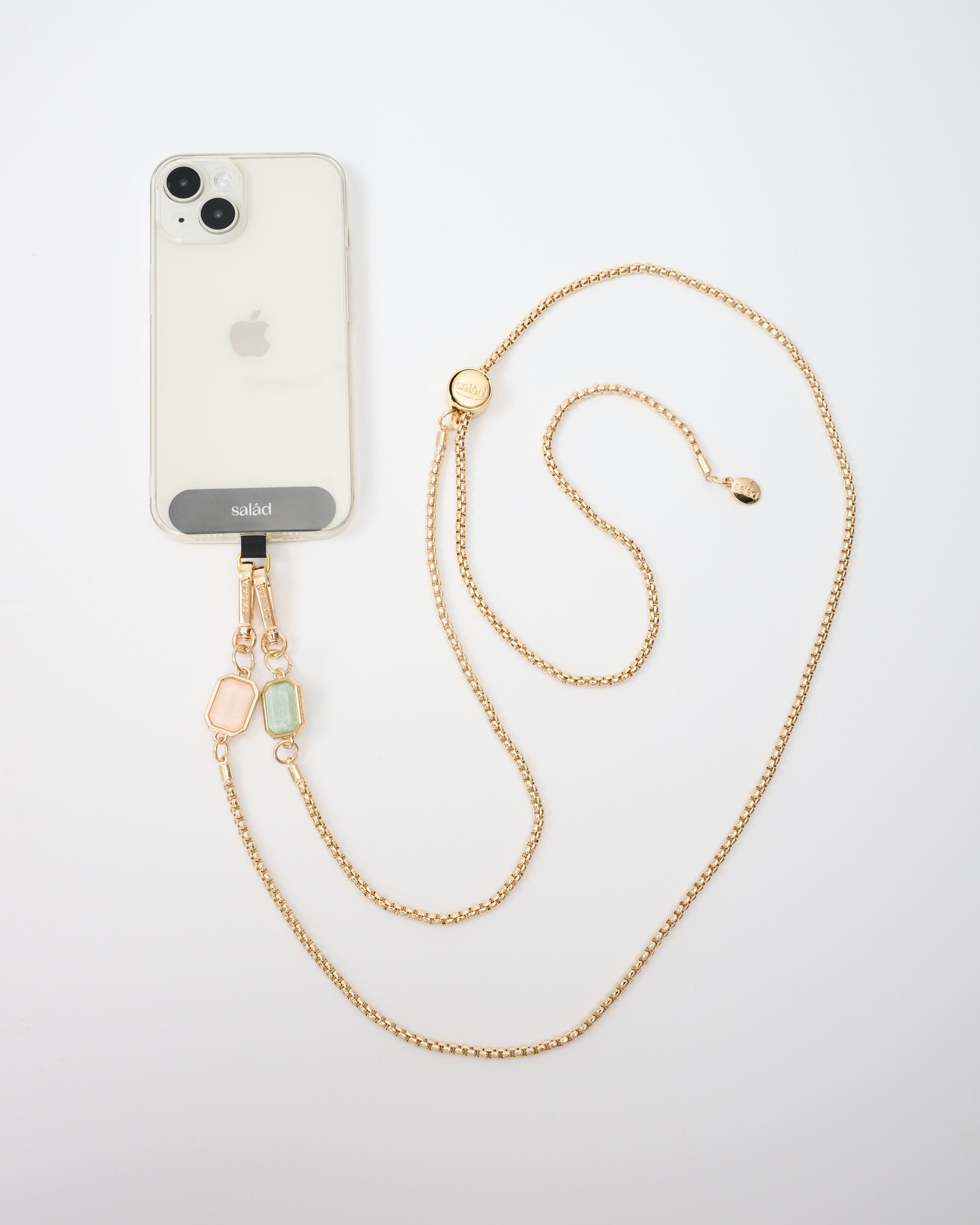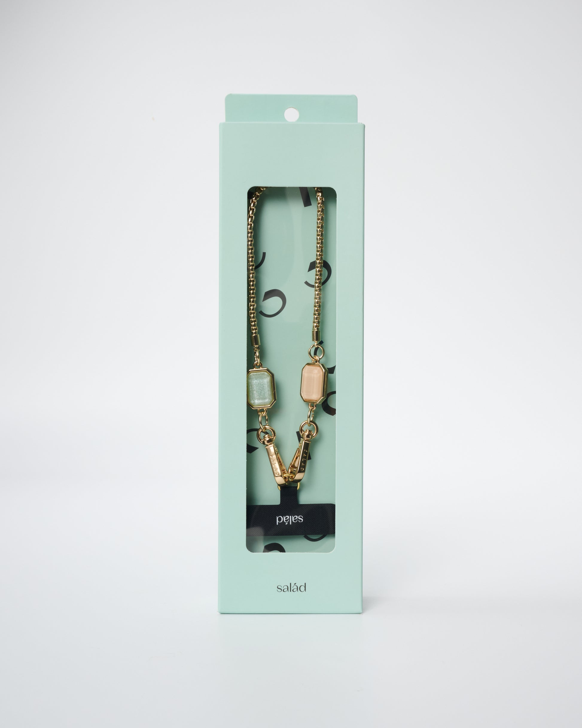 • 附送手機掛繩膠片,印有品牌"Salad"商標,展現品牌特色