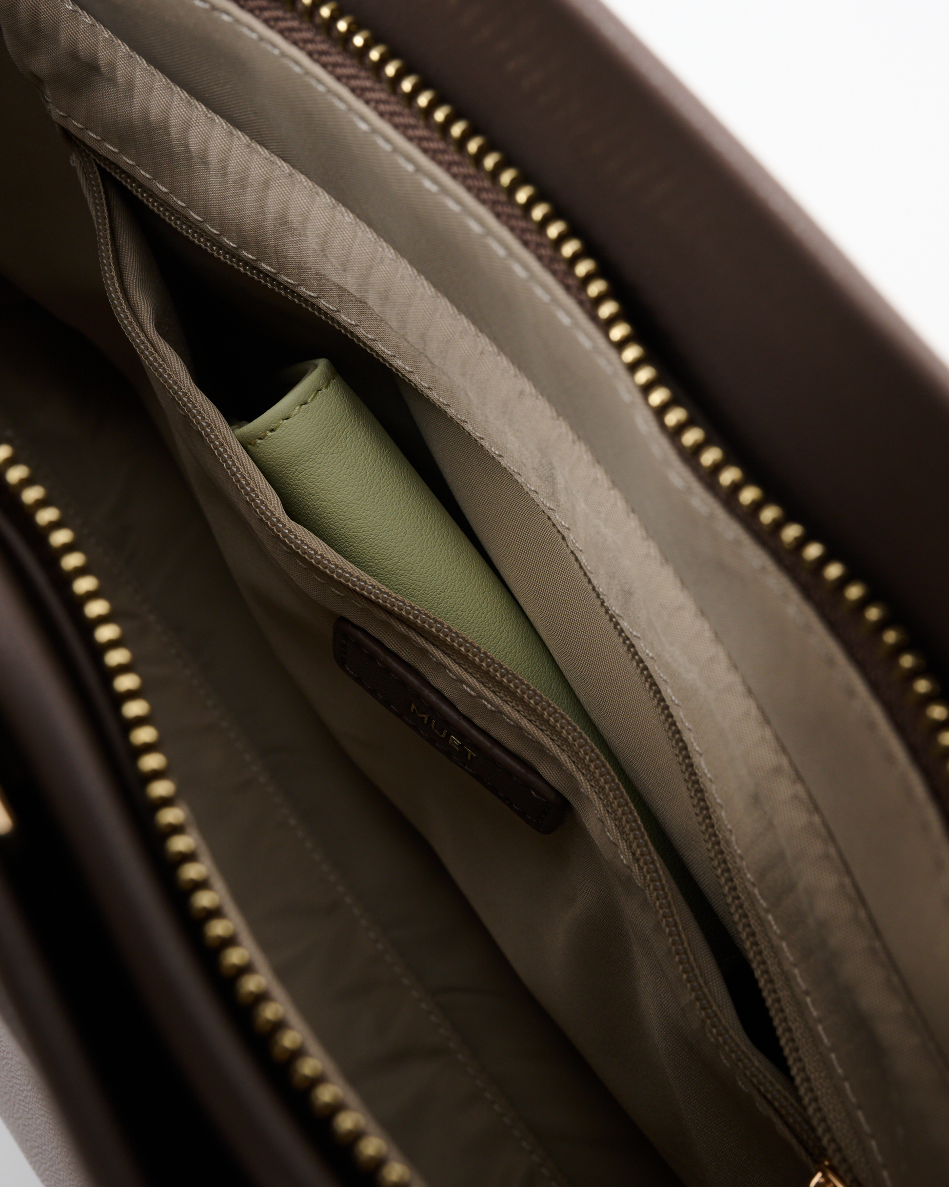 • 主隔層分為前後兩個隔層袋,便於物品分類