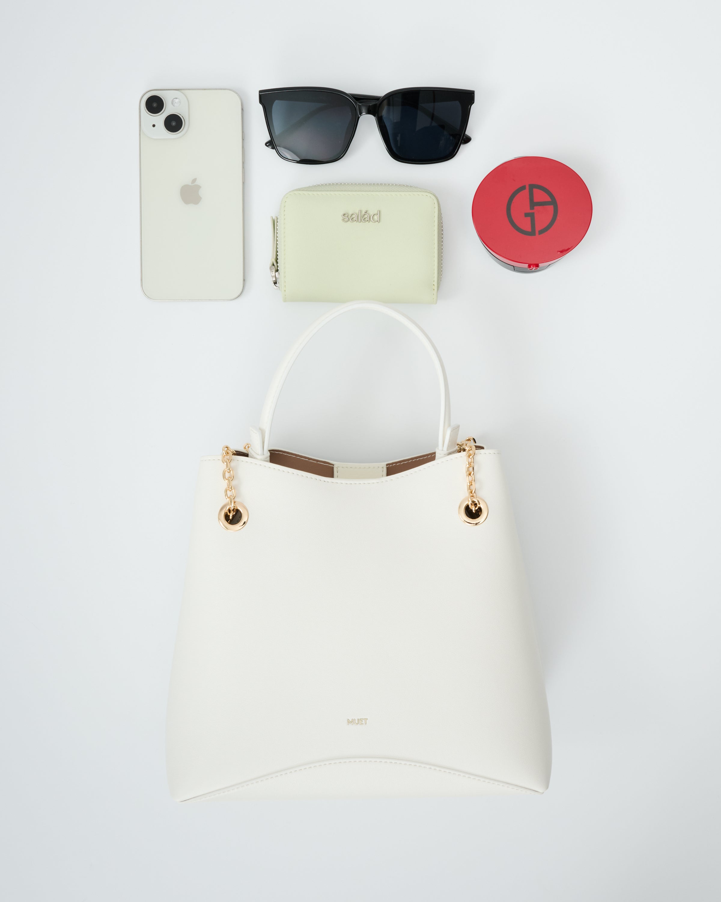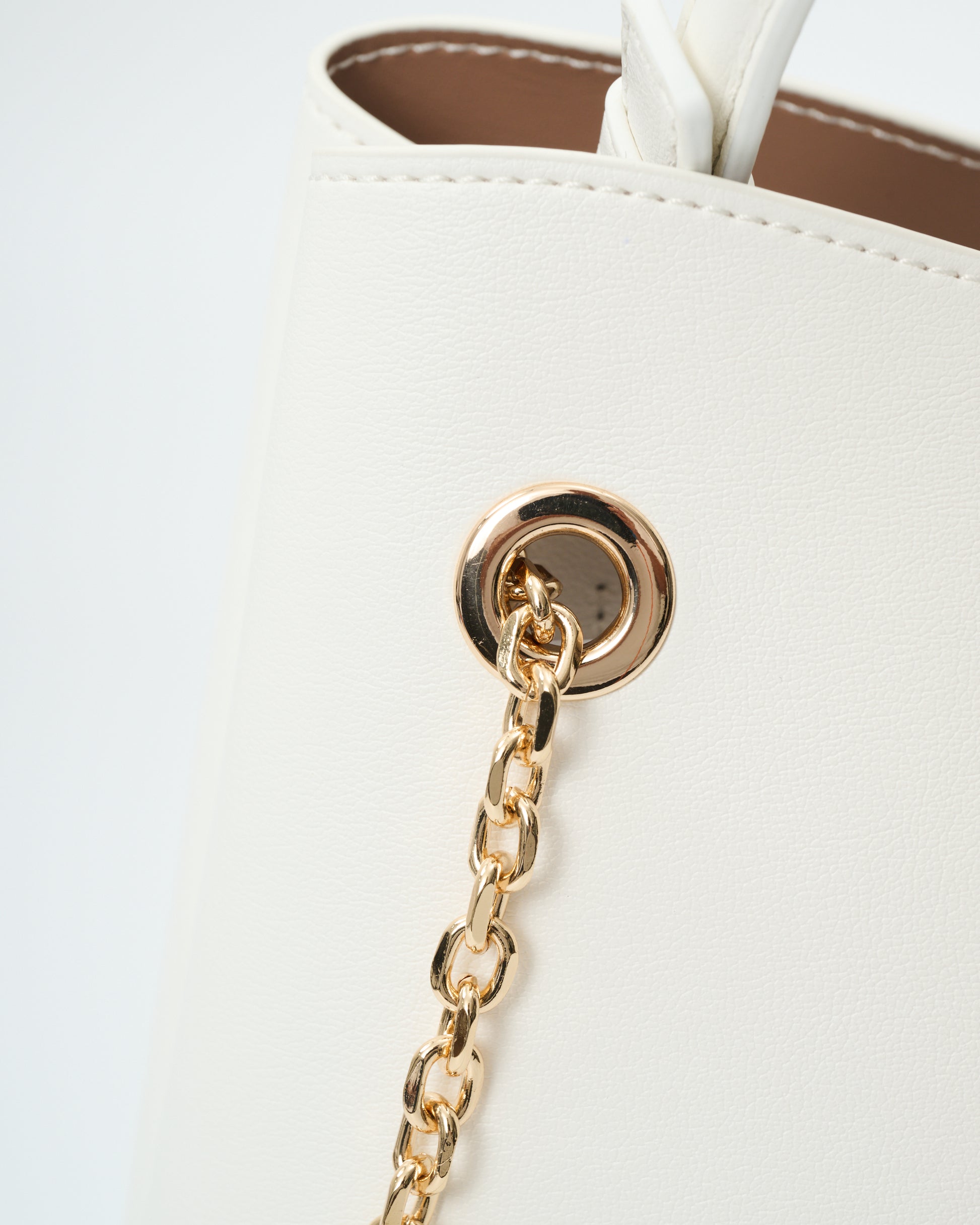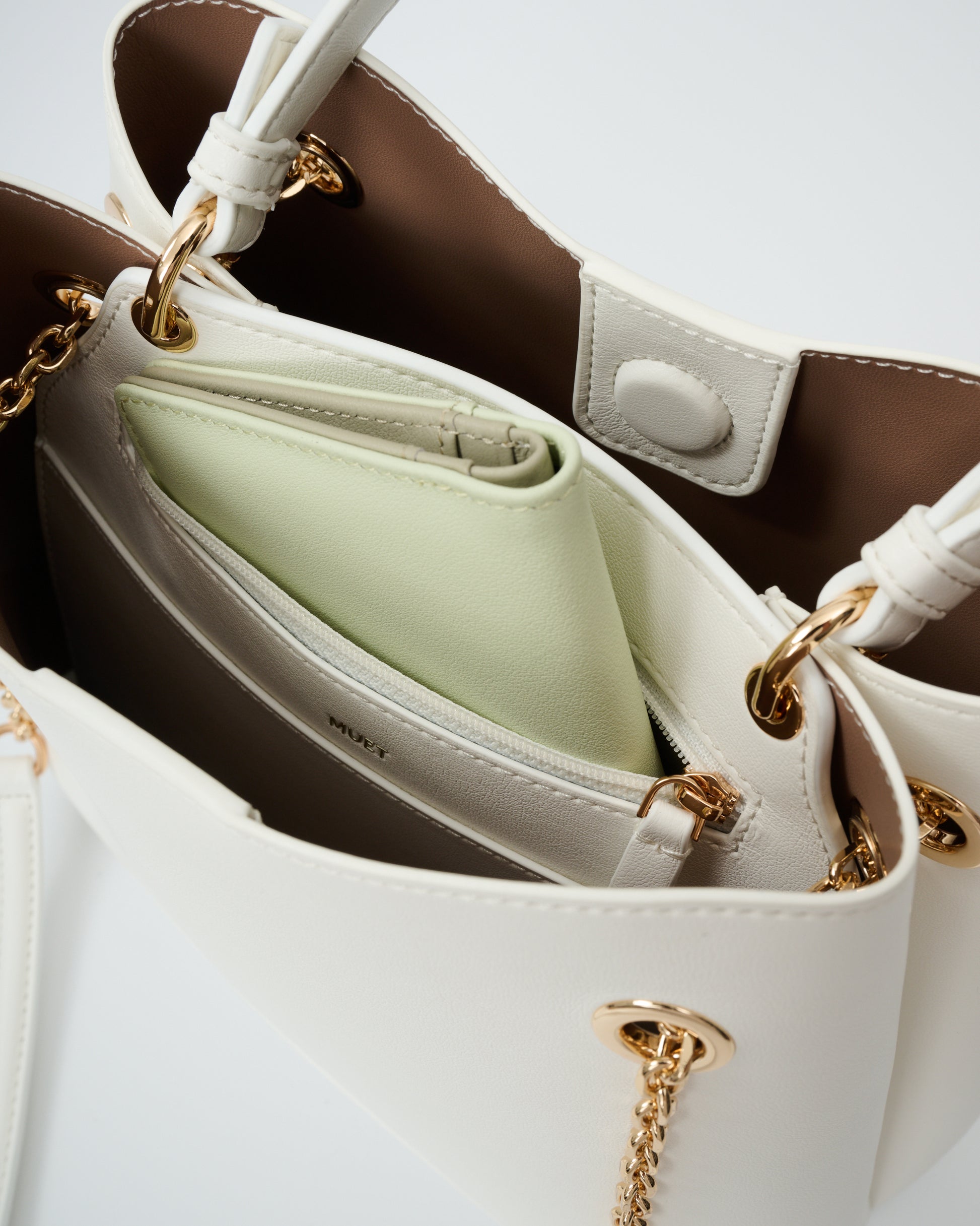 • 附有飾鏈皮革肩帶,增添時尚感