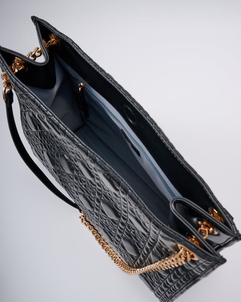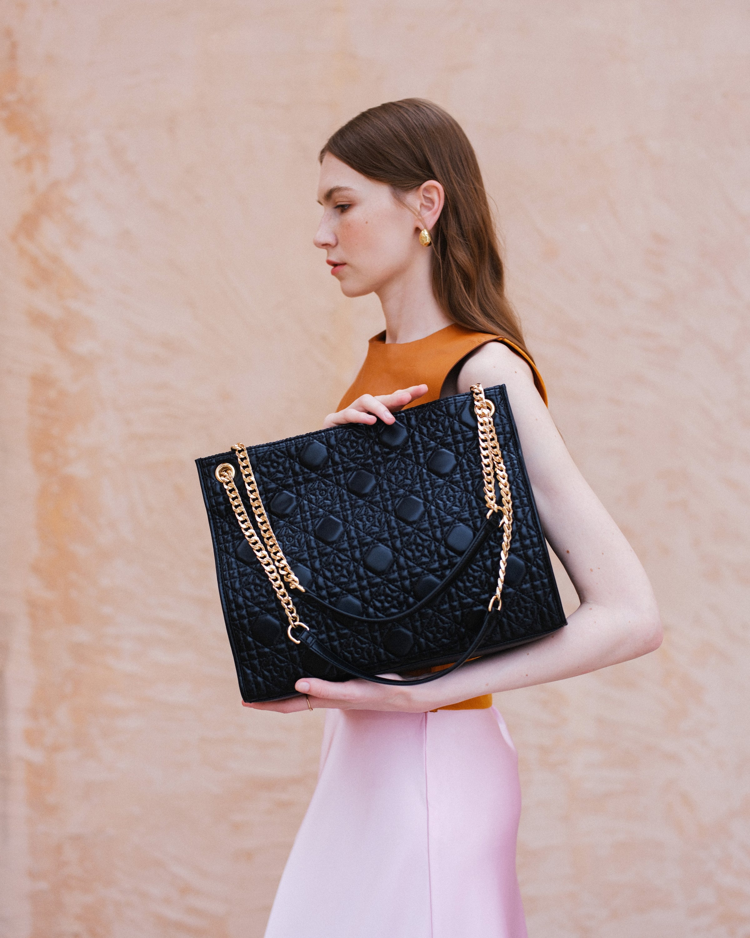•雙鏈條皮革肩帶 可切換為單肩/斜背模式