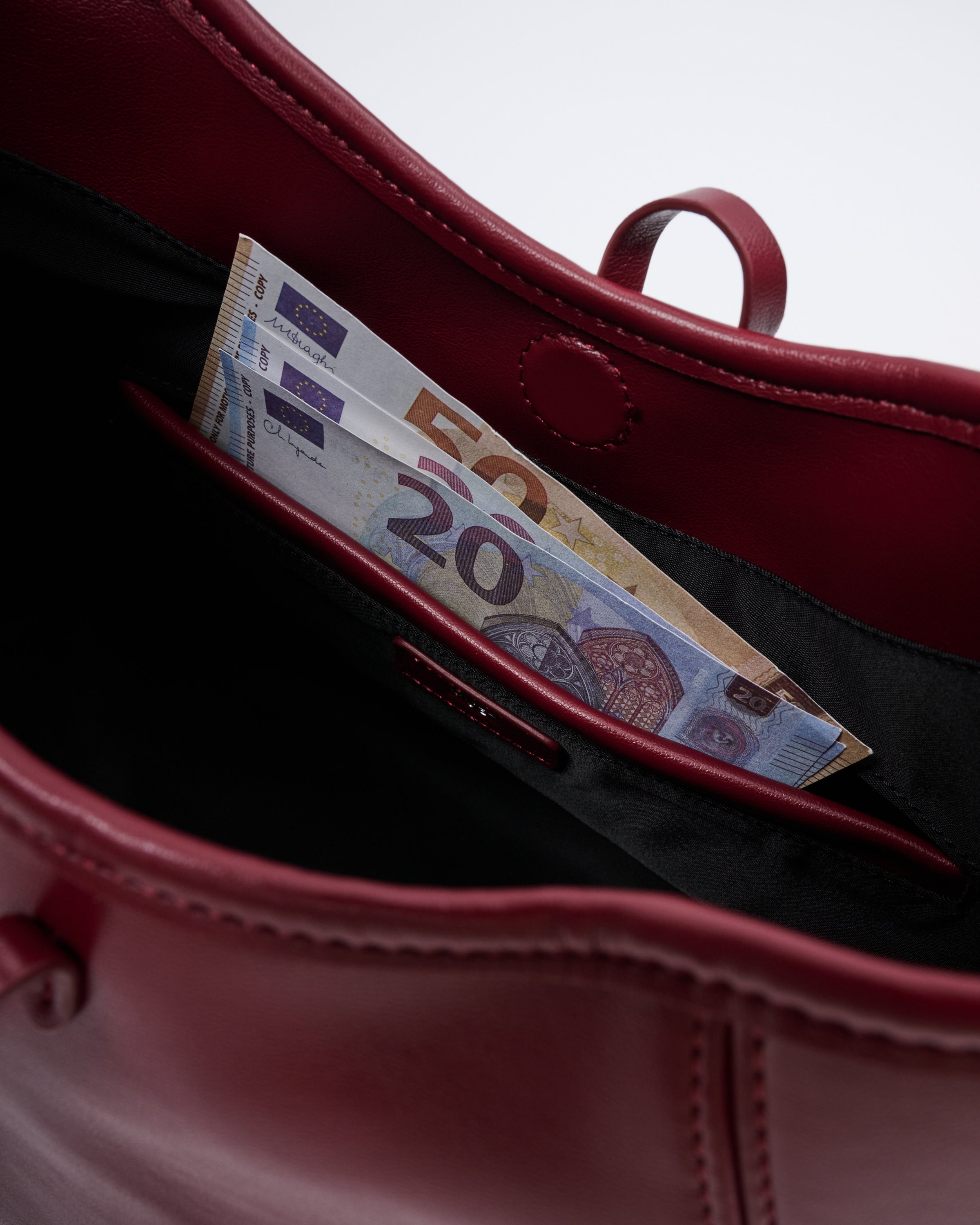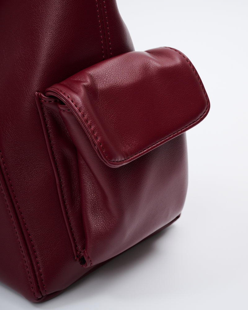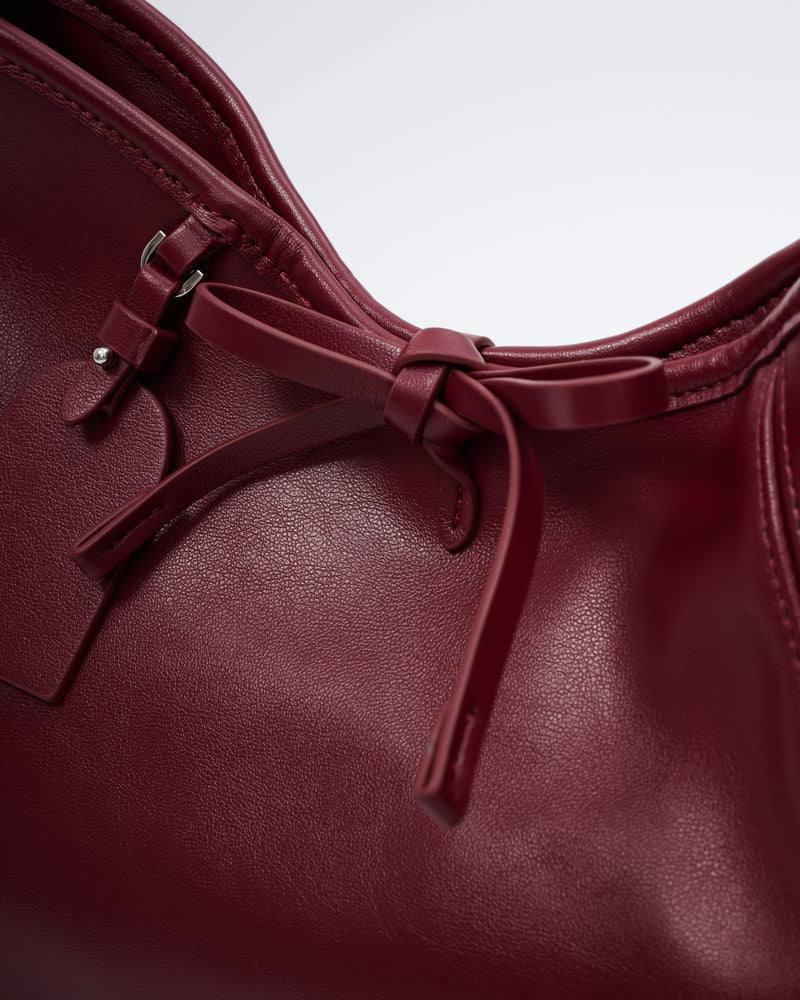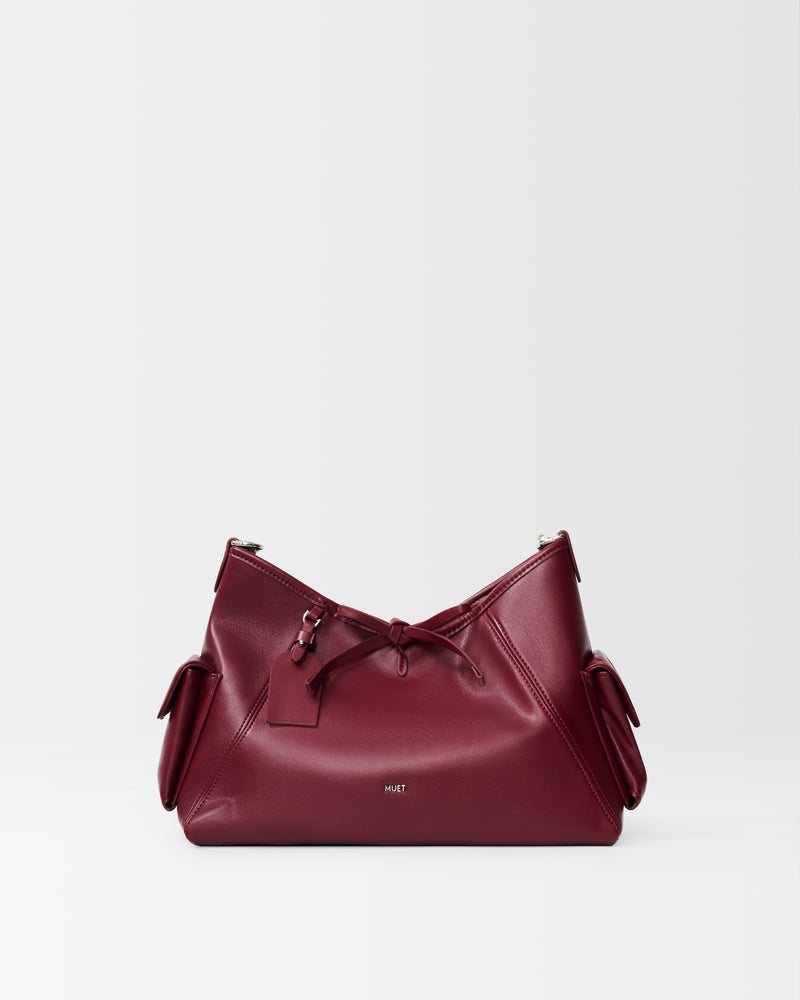 •採用經典流浪包廓形,搭配磁吸綁帶開合設計,袋口繩結裝飾增添趣味性