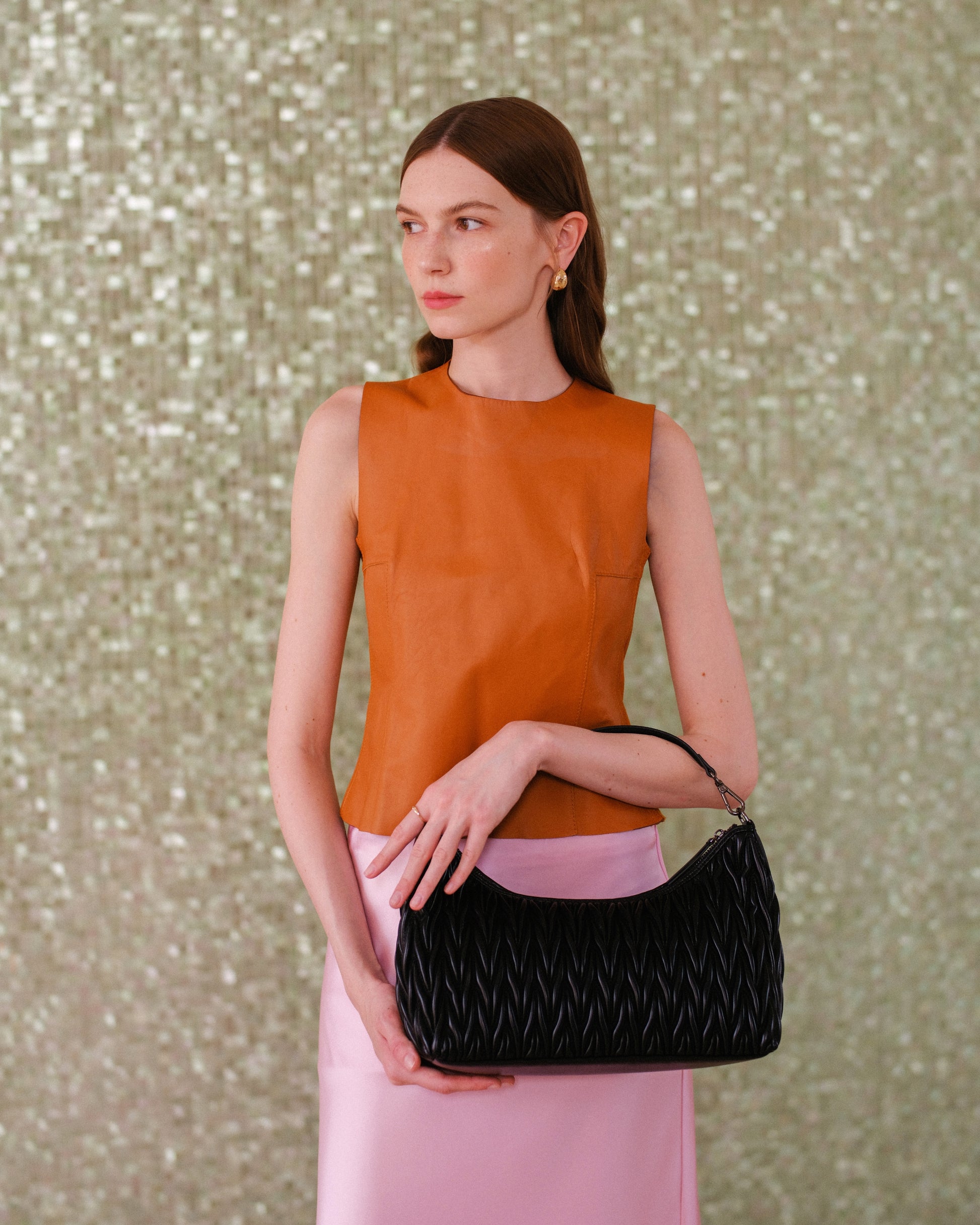 •採用立體抓皺紋理純素皮革,打造柔軟奢華的觸感