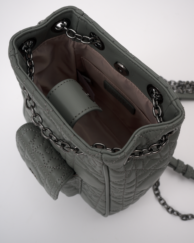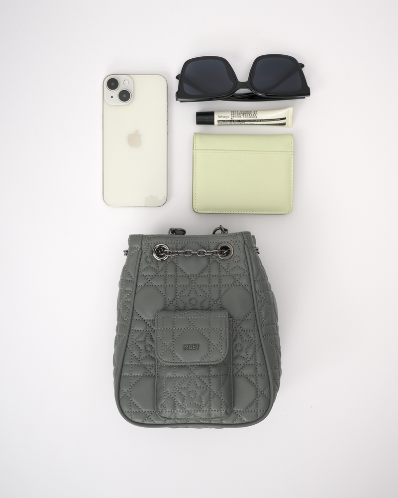• 袋有飾鏈索帶作點綴,可調教袋口大小;袋內設有一個內插袋