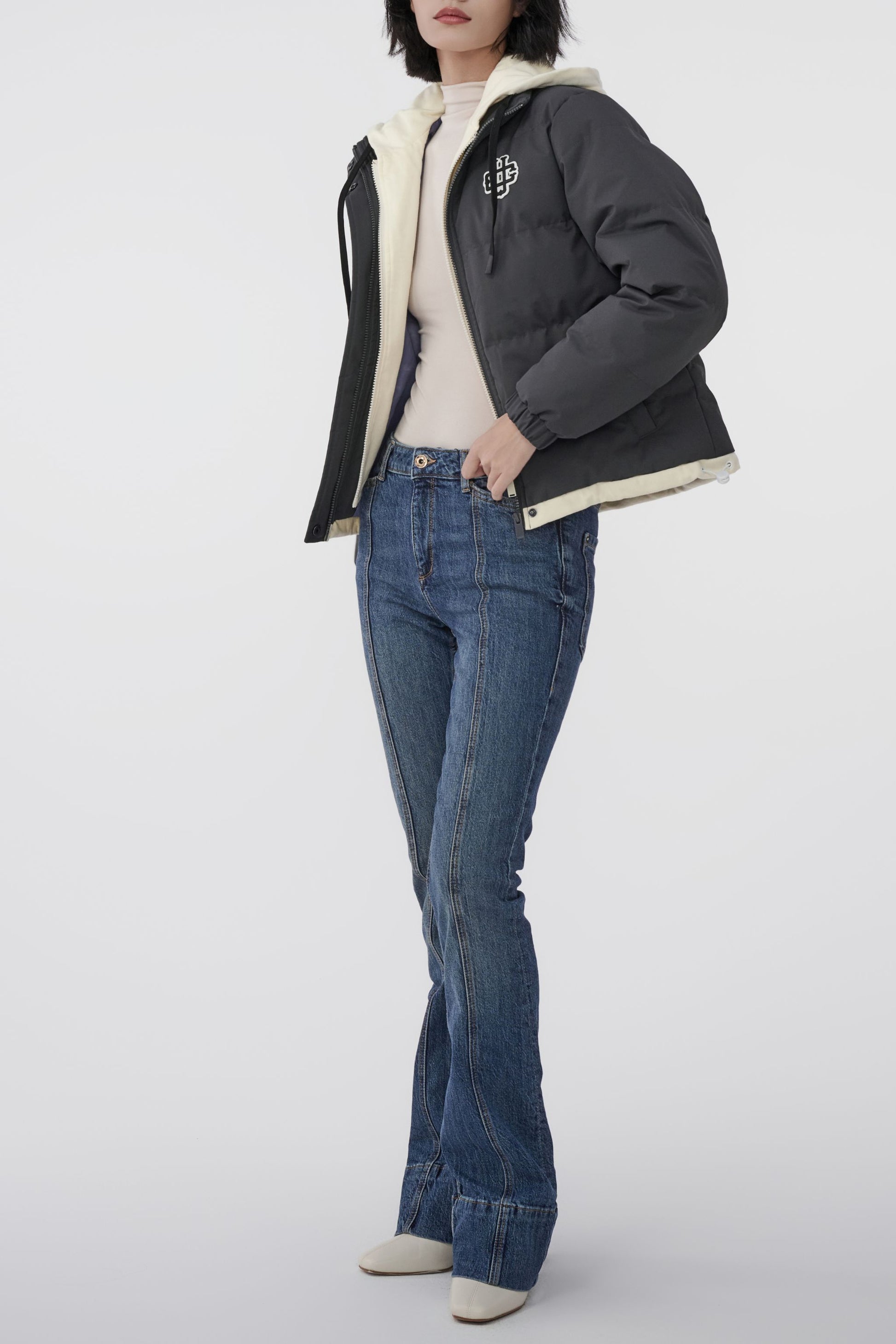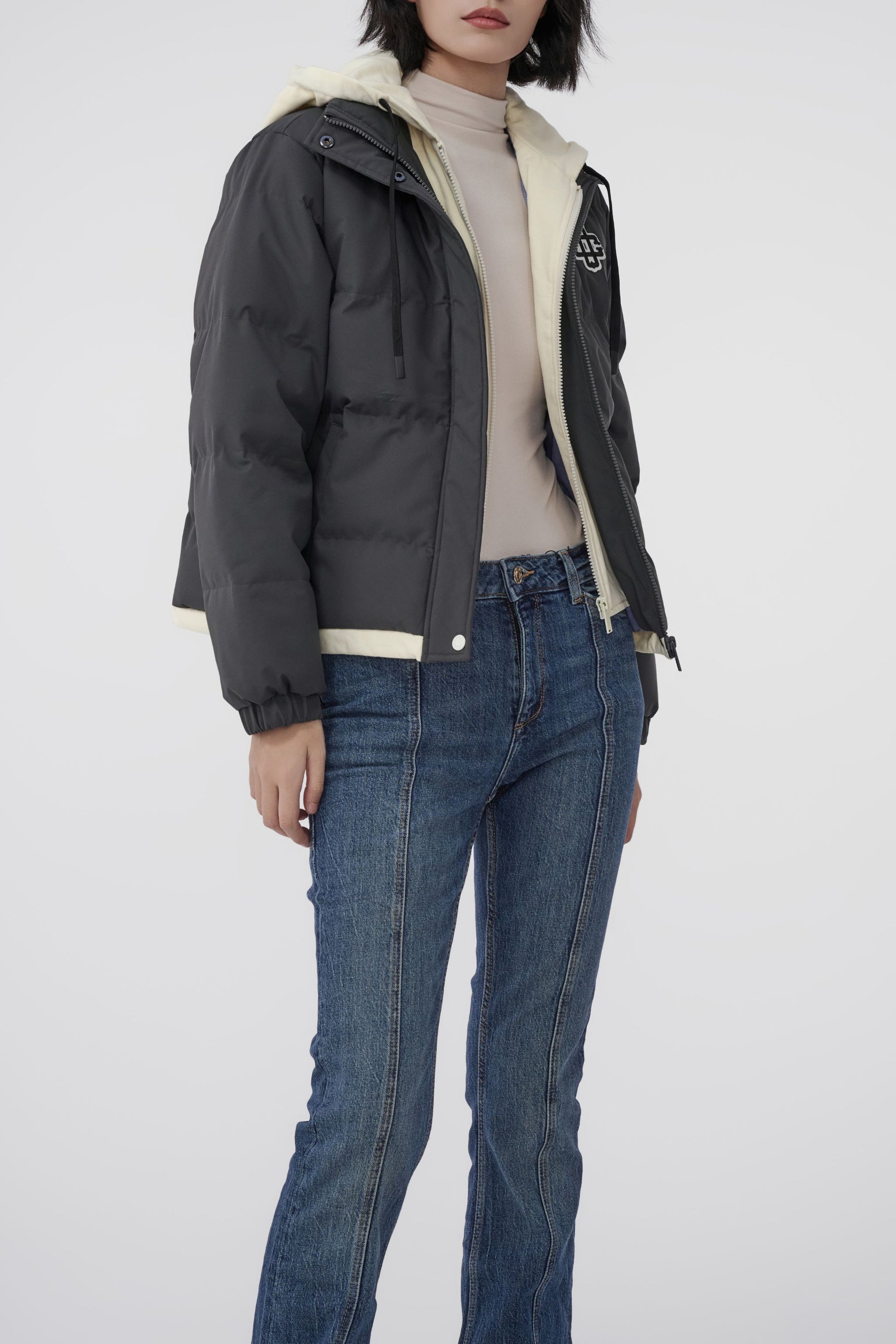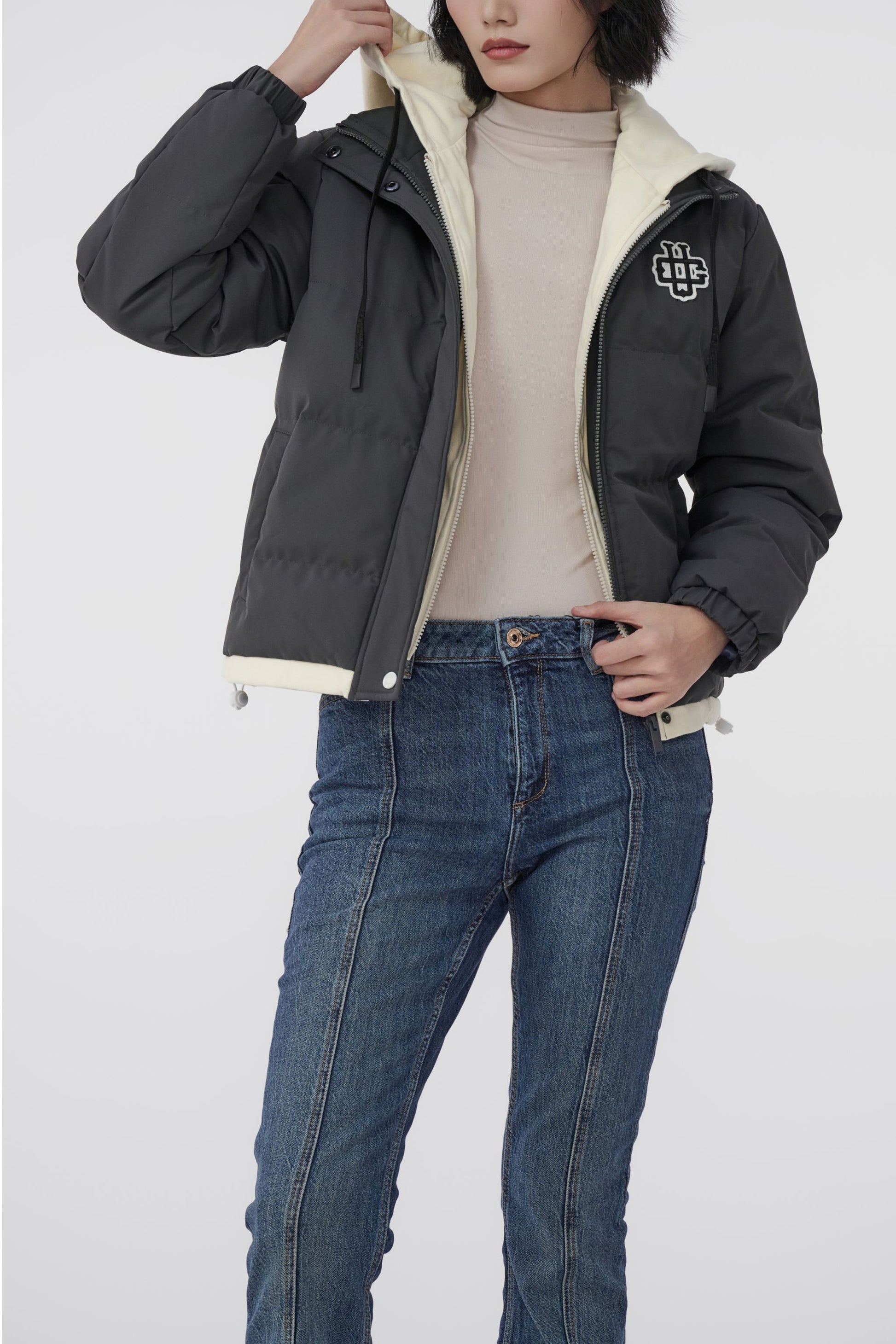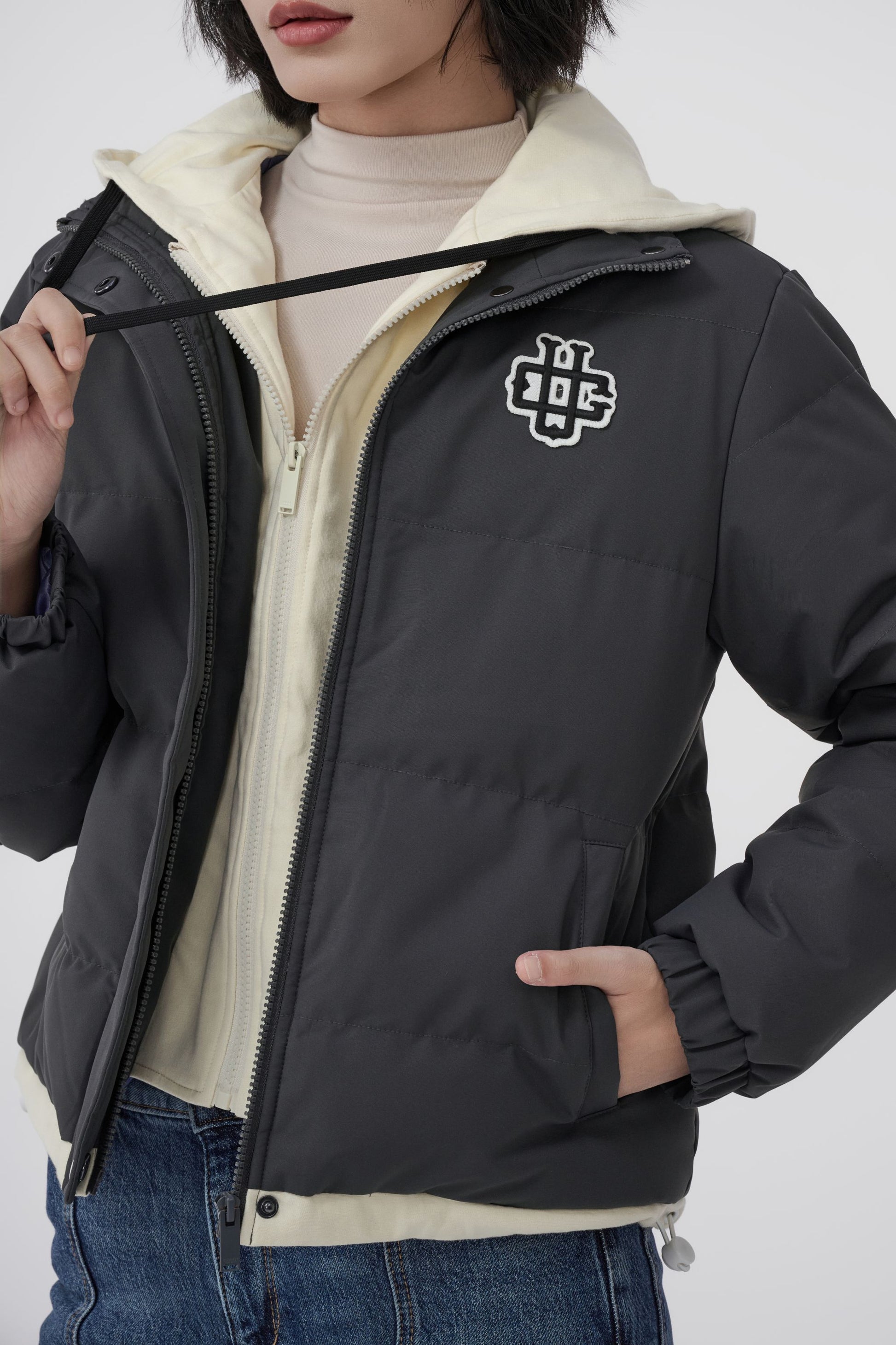 UNIVERSITY OF CARNABY 假兩件有帽棉衣